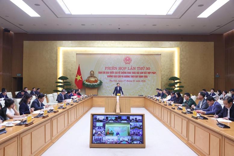 Chiều 27/1, Ban Chỉ đạo Quốc gia về chống khai thác hải sản bất hợp pháp, không báo cáo và không theo quy định (IUU) đã họp Phiên thứ 30 của Ban Chỉ đạo. Phiên họp được tổ chức trực tiếp tại đầu cầu Trụ sở Chính phủ, trực tuyến với đầu cầu 22 tỉnh, thành phố ven biển.