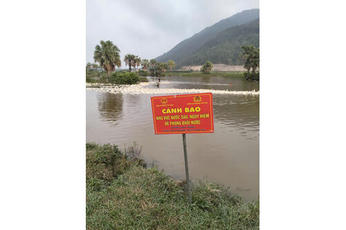 Công an phường Tân Dân cắm biển cảnh báo nguy hiểm tại 24 điểm tiềm ẩn nguy cơ đuối nước