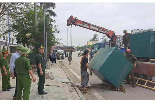 Đoàn thanh niên Công an phường Đông Tiến hỗ trợ Nhân dân khắc phục hậu quả mưa đá -
