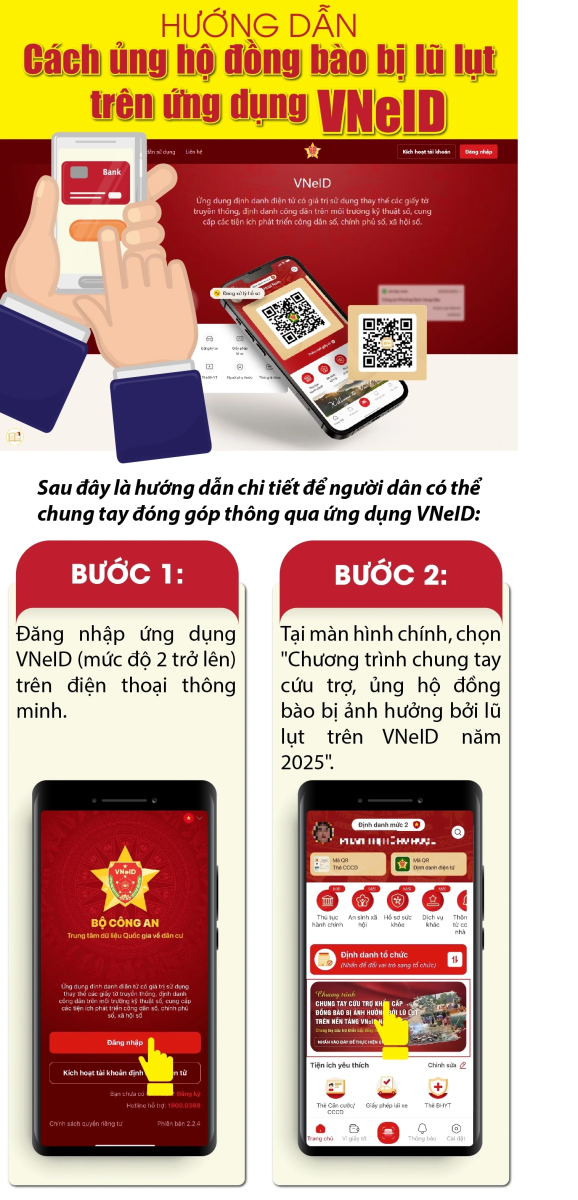 HƯỚNG DẪN CÁCH ỦNG HỘ ĐỒNG BÀO BỊ LŨ LỤT TRÊN ỨNG DỤNG VNEID