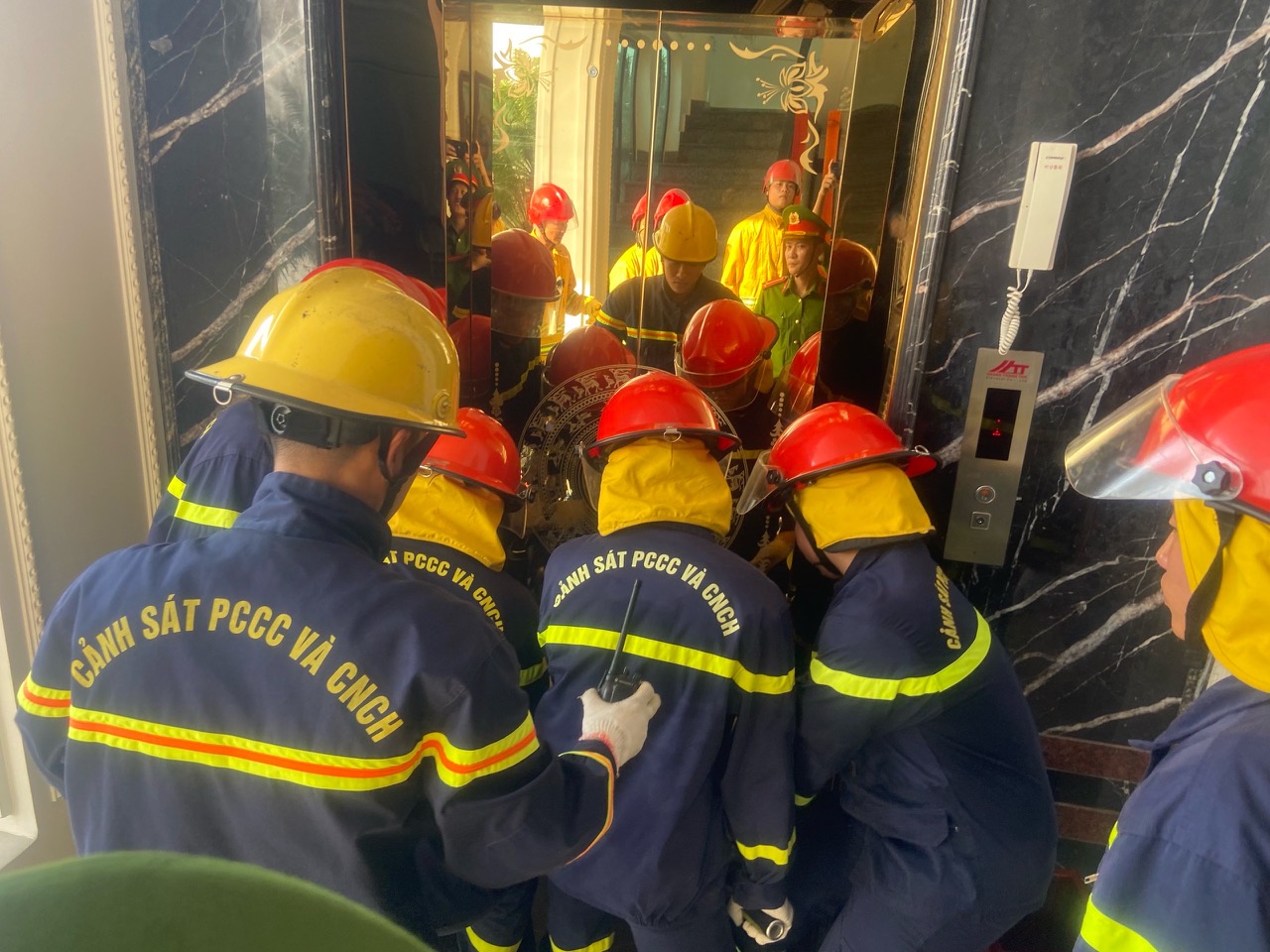 Giai đoạn 3: Tổ chức, chỉ huy lực lượng dân phòng phối hợp CNCH cùng với lực lượng Cảnh sát PCCC&CNCH và các đơn vị Công an địa phương sử dụng đội hình banh cắt thuỷ lực cứu 2 người bị mắc kẹt trong thang máy, Sử dụng đệm hơi cứu nạn tổ chức cứu các nạn nhân đang ở trên tầng 2 do cầu thang bị cấu kiện đè chắn. Đồng thời cử trinh sát tìm vị trí 1 nạn nhân còn lại đang bị cấu kiện đè lên người, sử dụng đội hình đệm thuỷ lực để nâng cấu kiện giải cứu nạn nhân. Ngay sau khi giải cứu thành công nạn nhân bị cấu kiện đè, lực lượng y tế An Việt nhanh chóng dùng cáng cứu thương trở nạn nhân đi cấp cứu tại bệnh viên đa khoa an việt.