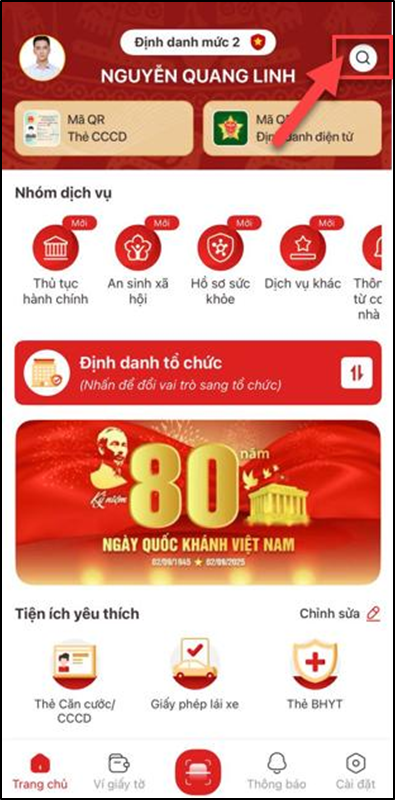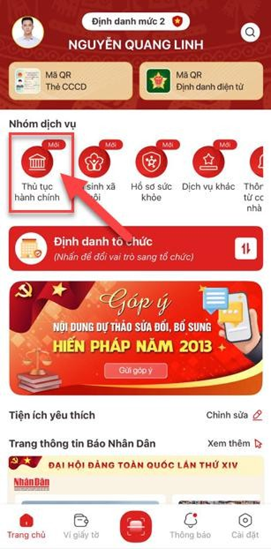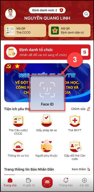 - Bước 1: Đăng nhập vào ứng dụng VNeID.