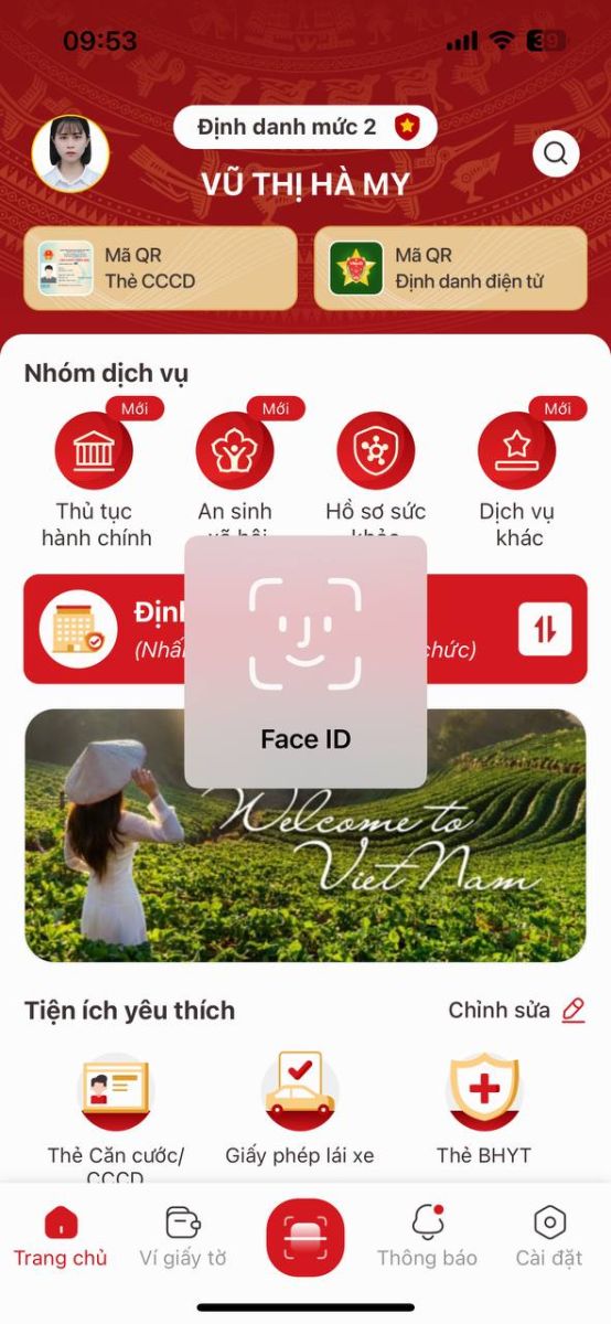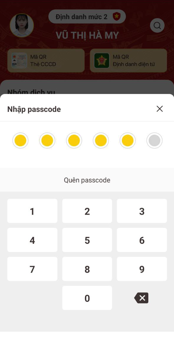 Trường hợp công dân đã cài đặt phương thức xác thực bằng khuôn mặt (Face ID) thay thế nhập passcode
