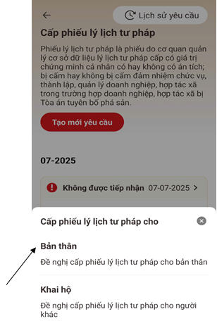 HƯỚNG DẪN YÊU CẦU CẤP PHIẾU LÝ LỊCH TƯ PHÁP TRÊN ỨNG DỤNG VNEID