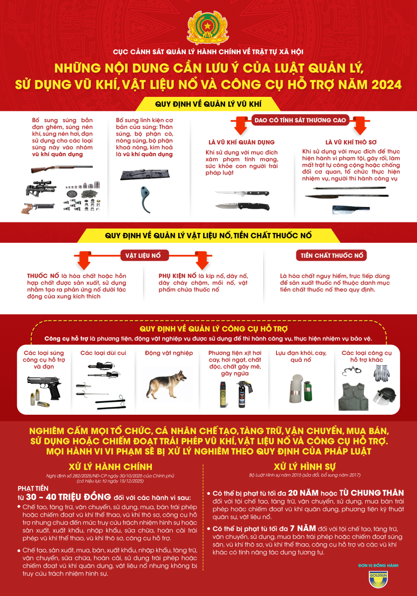 NHỮNG NỘI DUNG CẦN LƯU Ý CỦA LUẬT QUẢN LÝ, SỬ DỤNG VŨ KHÍ, VẬT LIỆU NỔ VÀ CÔNG CỤ HỖ TRỢ