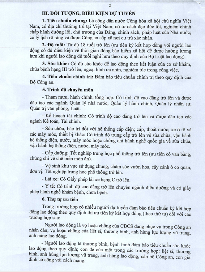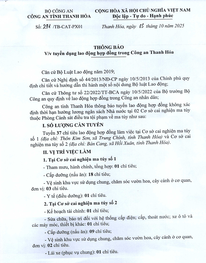 Thông báo về việc tuyển dụng lao động hợp đồng trong Công an Thanh Hóa
