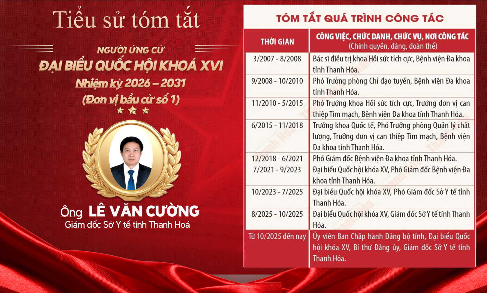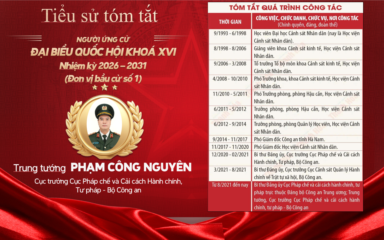Công an Thanh Hóa trân trọng giới thiệu tiểu sử người ứng cử đại biểu Quốc hội khóa XVI, nhiệm kỳ 2026 - 2031 tại đơn vị bầu cử số 1, tỉnh Thanh Hóa