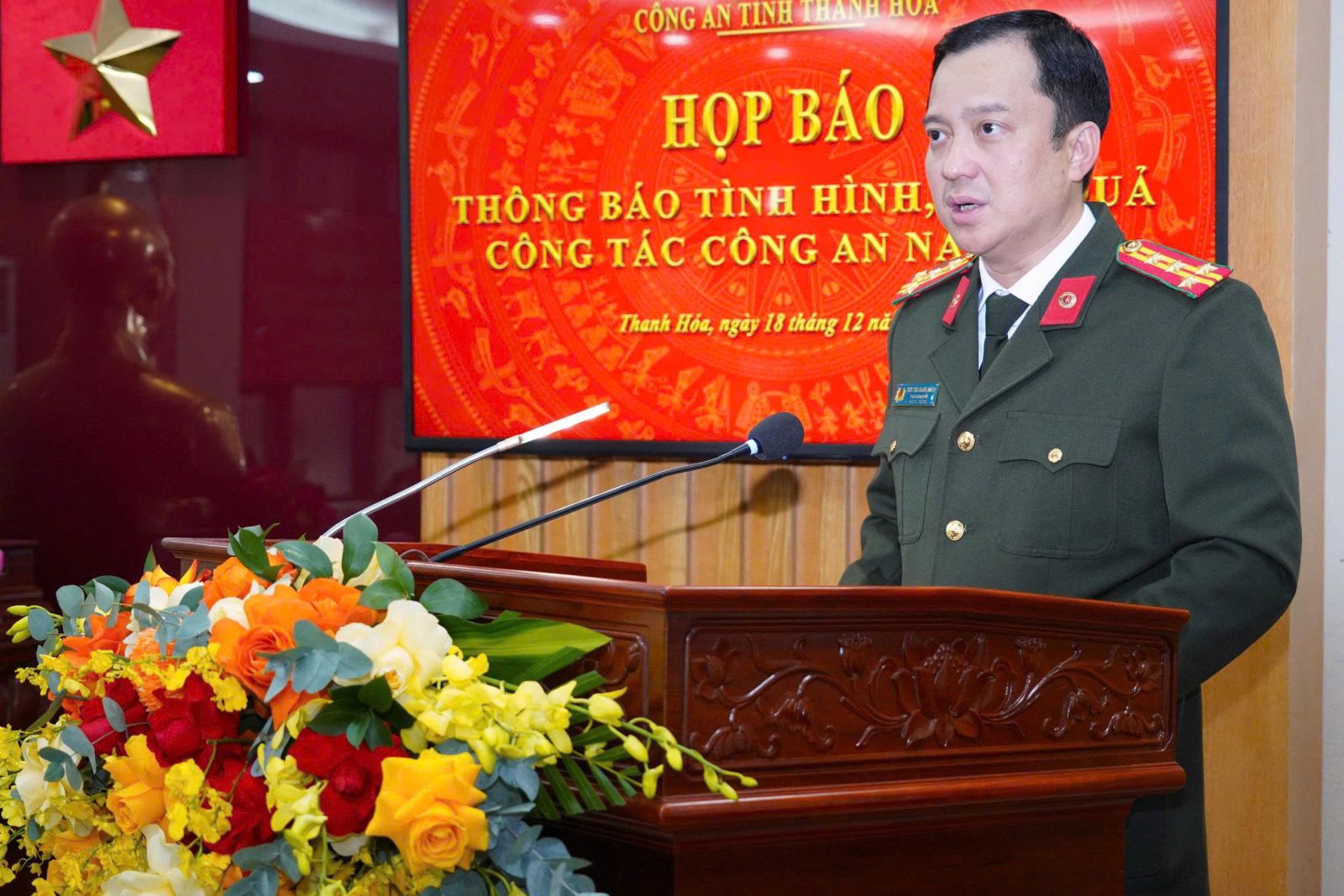 Chiều 18/12, Công an tỉnh Thanh Hoá tổ chức họp báo thông báo tình hình, kết quả các mặt công tác công an năm 2025, triển khai nhiệm vụ công tác trọng tâm năm 2026. Đại tá Trần Thái Quang Hoàng, Phó Bí thư Đảng ủy, Phó Giám đốc Công an tỉnh chủ trì.