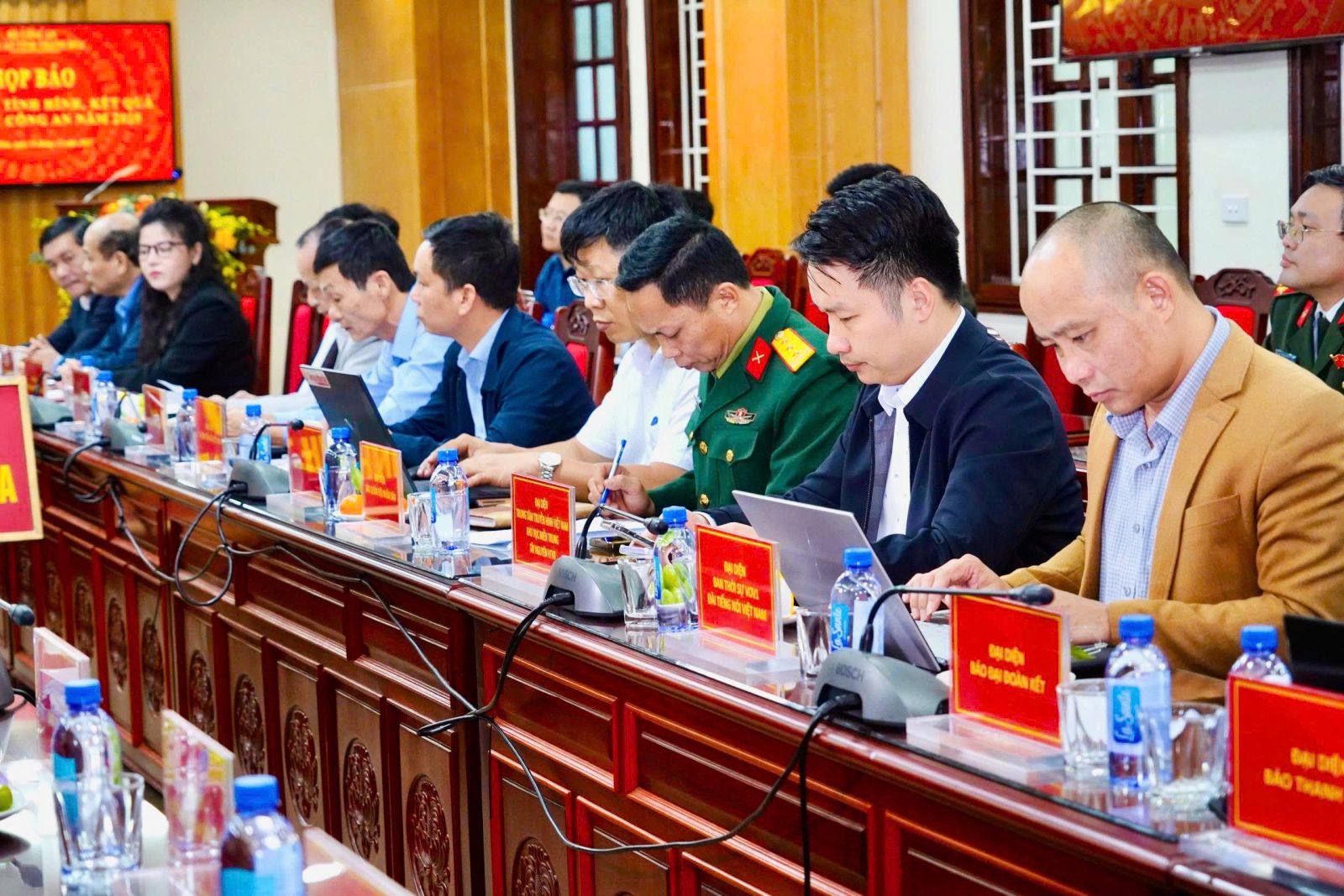 Tại buổi họp báo, Đại tá Trần Thái Quang Hoàng, Phó Giám đốc Công an tỉnh đã thông báo về tình hình, kết quả nổi bật trong công tác Công an năm 2025, một số mục tiêu, nhiệm vụ công tác trong tâm năm 2026. Bám sát chỉ đạo của Bộ Công an, Tỉnh ủy, UBND tỉnh, năm 2025, Công an tỉnh đã phát huy vai trò gương mẫu, đi đầu trong công tác tham mưu chiến lược; chủ động nắm chắc, đánh giá, dự báo sát, đúng tình hình, kịp thời tham mưu Tỉnh ủy, UBND tỉnh tháo gỡ khó khăn, vướng mắc, “điểm nghẽn” góp phần khơi thông nguồn lực phát triển kinh tế - xã hội của tỉnh.