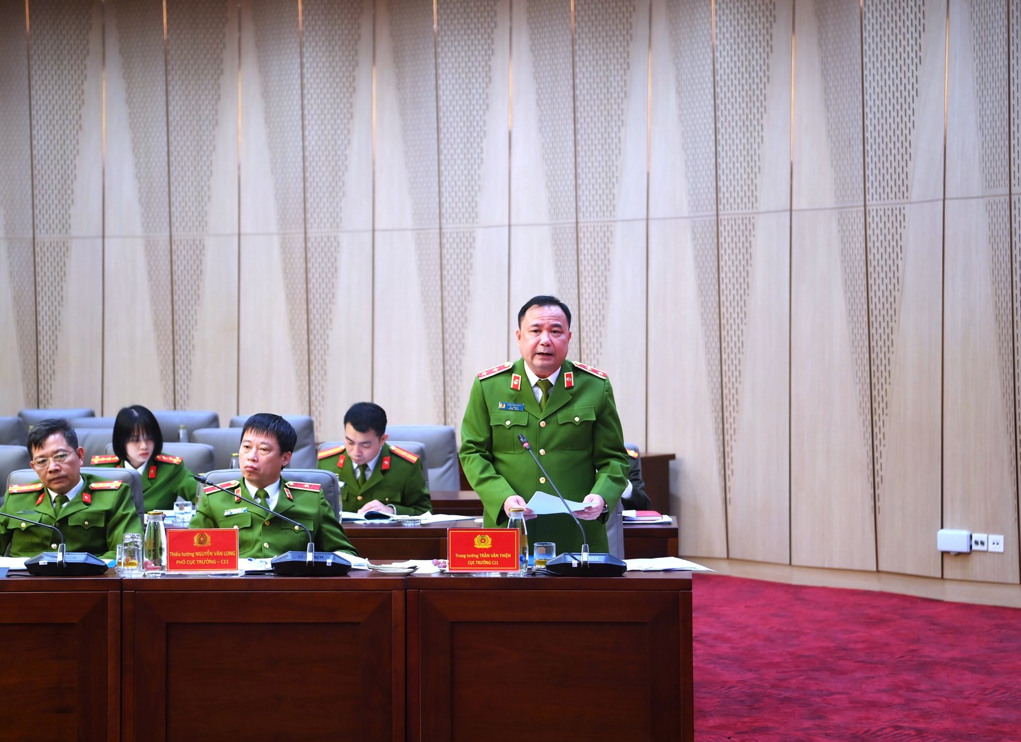 Trung tướng Trần Văn Thiện, Cục trưởng Cục Cảnh sát Cảnh sát QLTG, TG và THAHS tại cộng đồng giải đáp các kiến nghị của Công an các địa phương.(Cổng TTĐT Bộ Công an)