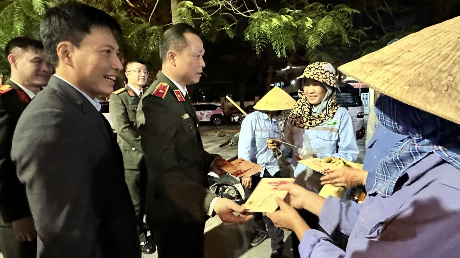 Đồng chí Giám đốc Công an tỉnh thăm, động viên lực lượng bảo vệ ANTT cơ sở và công nhân vệ sinh môi trường đang làm nhiệm vụ trên địa bàn phường Hạc Thành dịp Tết Nguyên đán