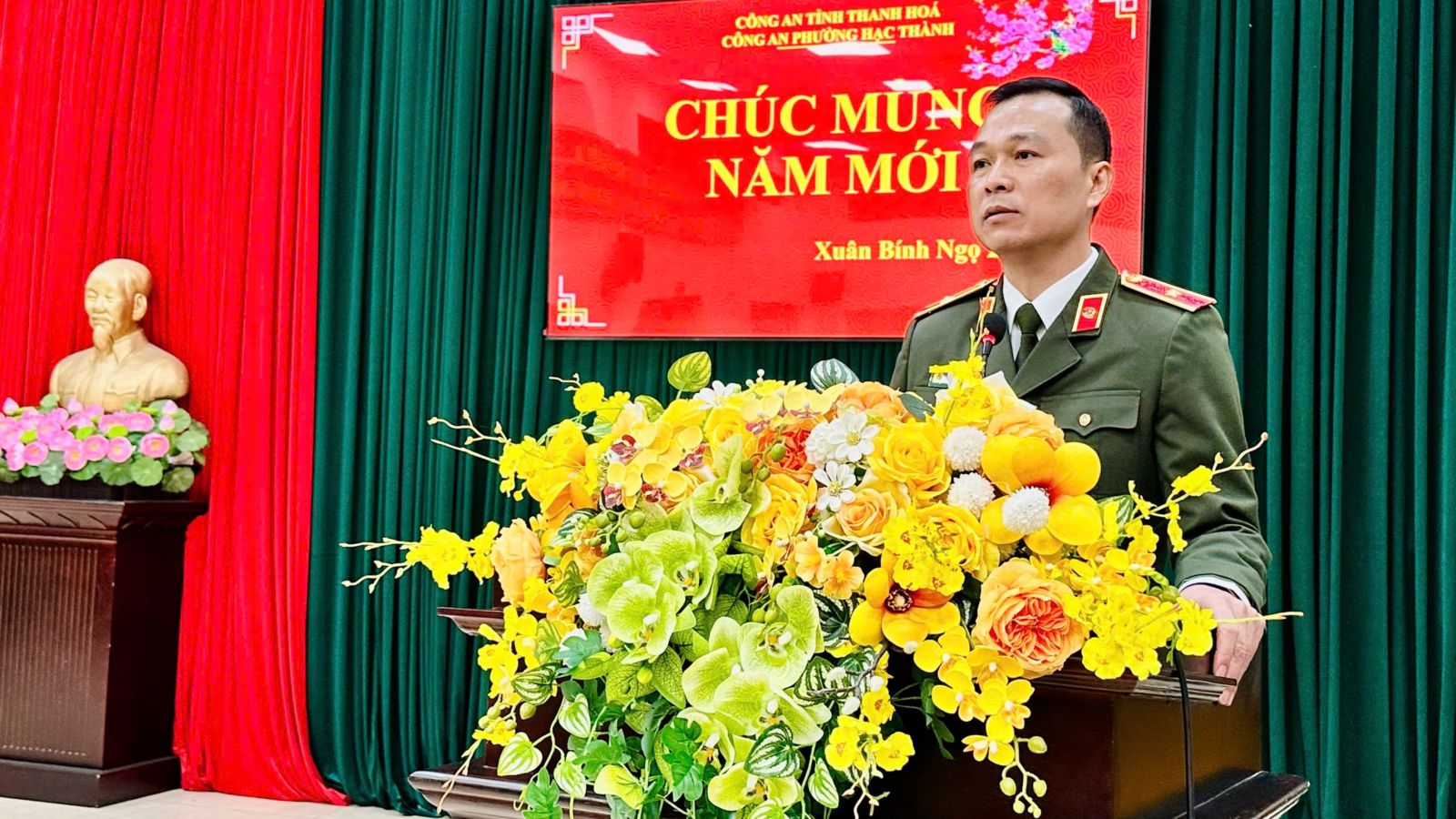 Ghi nhận và biểu dương tinh thần chủ động, trách nhiệm của cán bộ, chiến sĩ Công an phường, Thiếu tướng Tô Anh Dũng, Giám đốc Công an tỉnh đã động viên và gửi lời chúc mừng năm mới sức khỏe, hạnh phúc, bình an tới toàn thể cán bộ, chiến sĩ Công an phường Hạc Thành và gia đình.