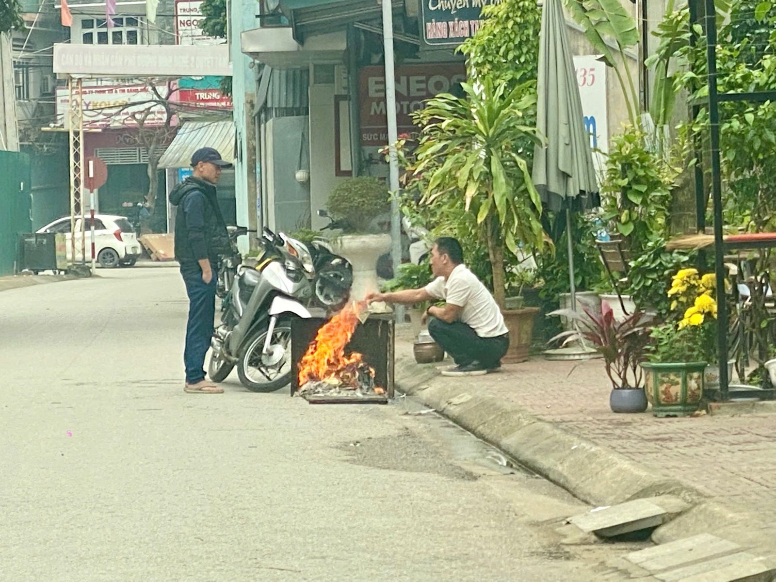 Bên cạnh những hình ảnh đẹp trong ngày tiễn ông Công, ông Táo về trời, lực lượng chức năng vẫn ghi nhận những hình ảnh chưa đẹp. Đáng chú ý là tình trạng người dân tự ý đốt vàng mã ngay trên vỉa hè, lòng đường hoặc ngay cạnh các phương tiện ô tô, xe máy... Việc hóa vàng không có thùng chứa chuyên dụng khiến tro bụi bay tán loạn, không chỉ gây ô nhiễm không khí mà còn tiềm ẩn nguy cơ cháy nổ nghiêm trọng, nhất là trong điều kiện thời tiết khô hanh.