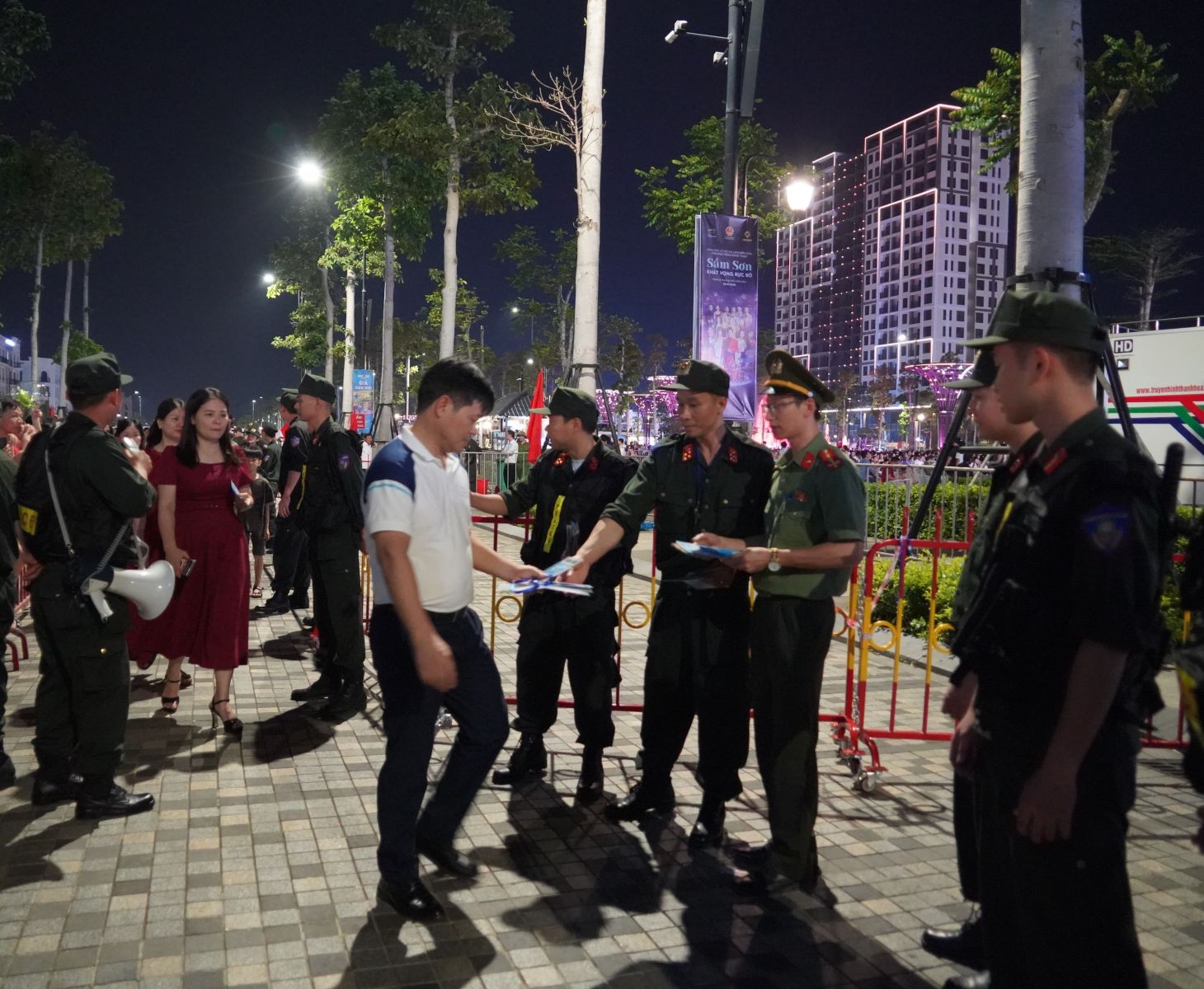Ngay từ 16h00', hơn 1.000 cán bộ, chiến sĩ thuộc các phòng Công an tỉnh và Công an các phường Sầm Sơn, Nam Sầm Sơn, cùng lực lượng bảo vệ an ninh, trật tự ở cơ sở, đã có mặt tại các vị trí, khu vực được phân công sẵn sàng thực hiện nhiệm vụ. Các tổ công tác được tổ chức, bố trí tại các khu vực, tuyến, địa bàn trọng điểm, hình thành thế trận an ninh nhiều lớp, khép kín, bảo đảm kiểm soát chặt chẽ địa bàn, chủ động phòng ngừa, đấu tranh, trấn áp tội phạm; giữ vững trật tự, an toàn giao thông, trật tự công cộng và phòng, chống cháy, nổ.