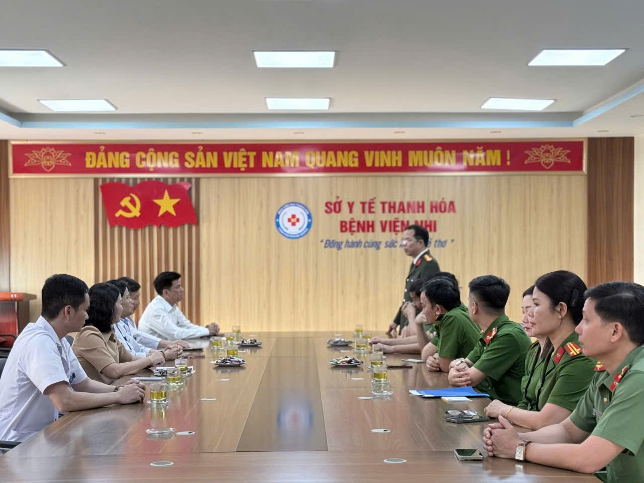 Khoa Nghiệp vụ cơ bản - Học viện Chính trị Công an nhân dân và Lớp Cao cấp lý luận chính trị khóa 7 - KTT1 Học viện Chính trị Công an nhân dân mở tại Công an tỉnh Thanh Hóa thăm hỏi và tặng quà cho bệnh nhân đang điều trị tại Bệnh viện Nhi Thanh Hoá