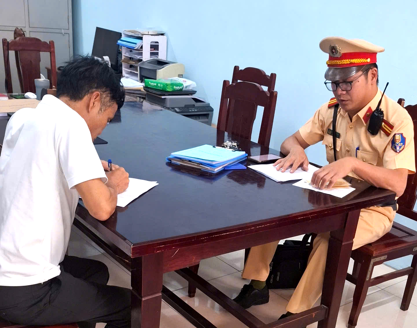 Lực lượng Cảnh sát giao thông lập biên bản vi phạm hành chính Anh Quách Văn L