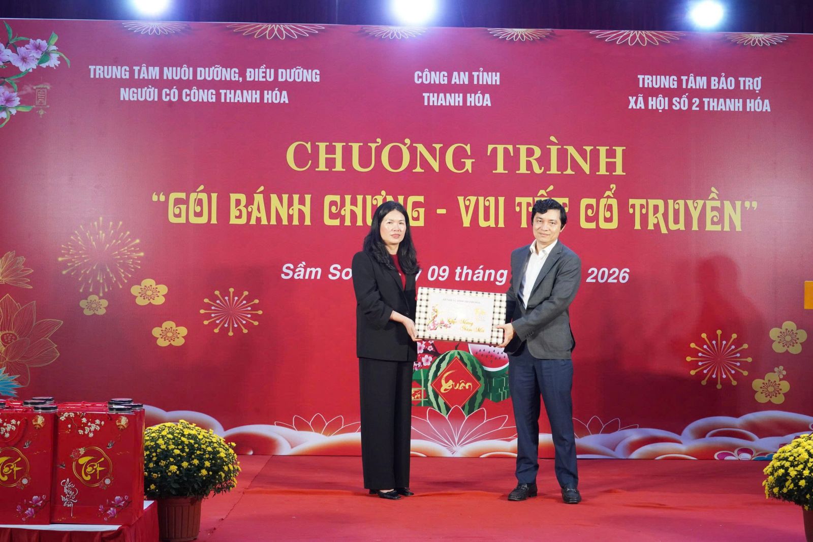 Với đạo lý “uống nước nhớ nguồn”, nhân dịp Tết Nguyên đán Bính Ngọ 2026, chiều 09/02, Công an tỉnh Thanh Hóa tổ chức Chương trình “Gói bánh chưng - Vui Tết cổ truyền” tại Trung tâm Nuôi dưỡng, điều dưỡng người có công và Trung tâm Bảo trợ xã hội số 2 tỉnh Thanh Hóa. Thiếu tướng Tô Anh Dũng, Giám đốc Công an tỉnh đã đến thăm, động viên và tặng quà người có công với cách mạng, các đối tượng bảo trợ xã hội đang nuôi dưỡng, chăm sóc tại 2 Trung tâm.
