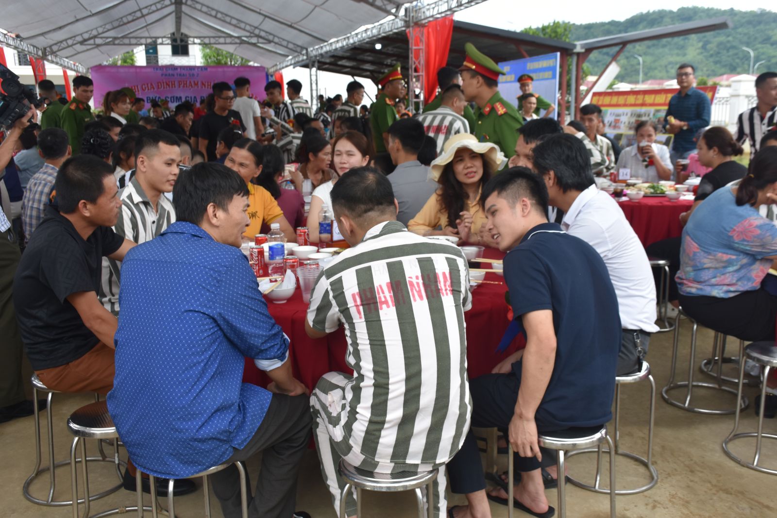 Bữa cơm thân mật, ấm áp giữa phạm nhân với thân nhân gia đình được Trại giam Thanh Cẩm tổ chức.