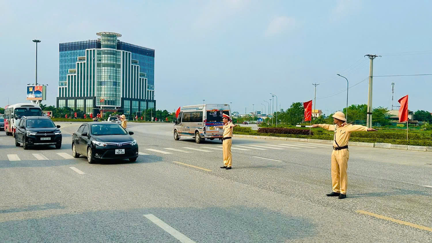Lực lượng Cảnh sát giao thông triển khai chốt trực, phân luồng phương tiện tại các tuyến đường trọng điểm.