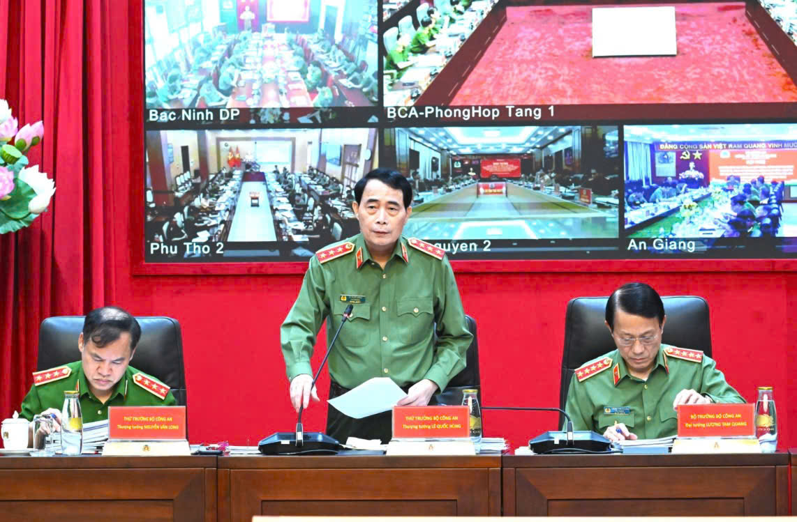 Tiếp tục triển khai quyết liệt các giải pháp kéo giảm tội phạm; phải bảo đảm các chỉ tiêu pháp lệnh trong công tác đấu tranh phòng, chống tội phạm, bảo đảm trật tự an toàn giao thông, cháy, nổ. Tập trung cao độ phát hiện, đấu tranh, xử lý nghiêm các hành vi buôn lậu, gian lận thương mại, hàng giả để bảo vệ sản xuất trong nước, đấu tranh với tội phạm và vi phạm pháp luật về môi trường, an toàn thực phẩm. Tiếp tục thực hiện thực chất Kế hoạch 483 về ma túy và mục tiêu xây dựng 30% xã, phường không ma túy. Chủ động nhận diện, đấu tranh quyết liệt với các loại tội phạm kinh tế thế hệ mới như gian lận carbon, làm giả truy xuất nguồn gốc, giả chứng thư số, giả dữ liệu doanh nghiệp.