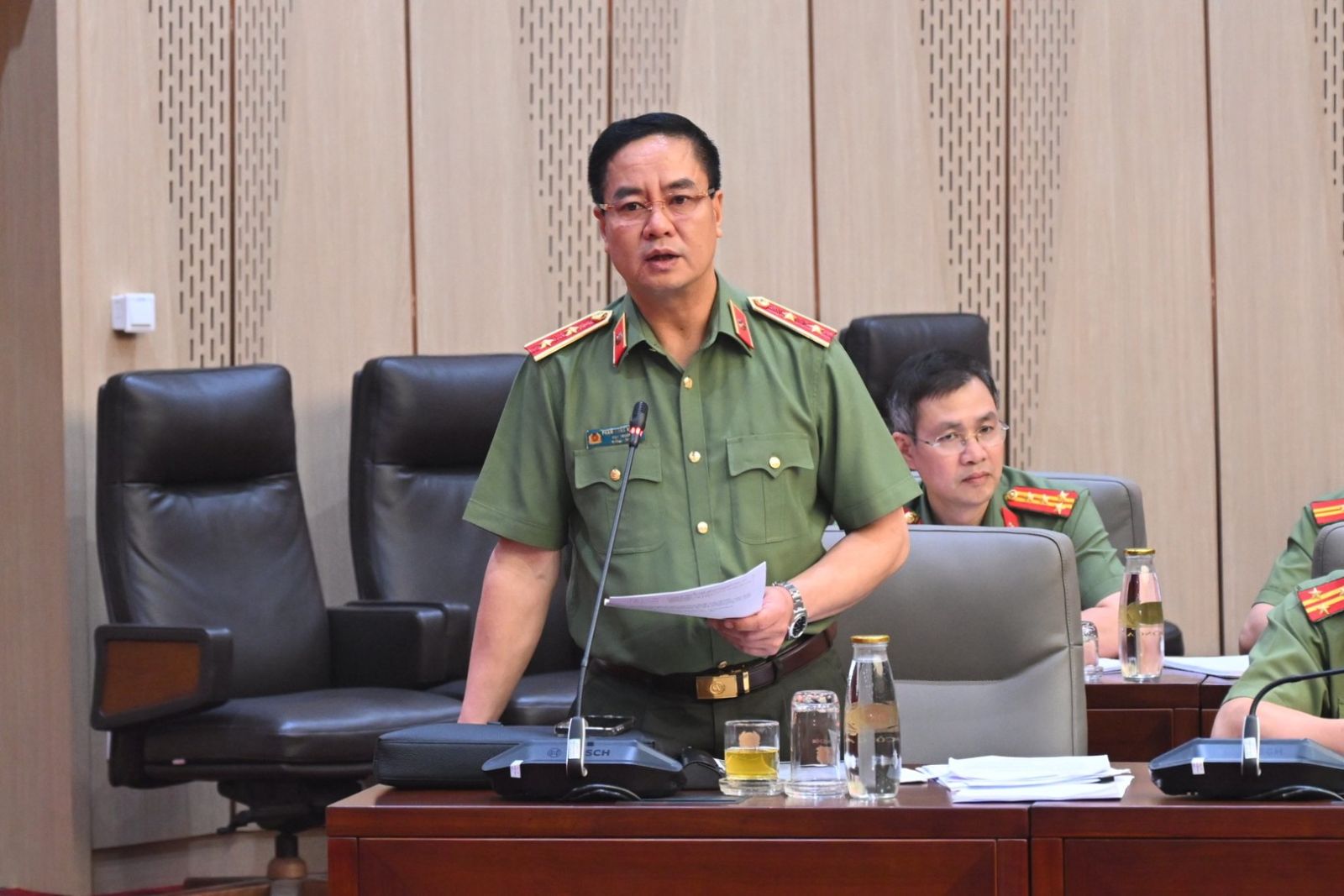 Trung tướng Phạm Công Nguyên, Cục trưởng Cục Pháp chế và cải cách hành chính, tư pháp phát biểu tại phiên họp.
