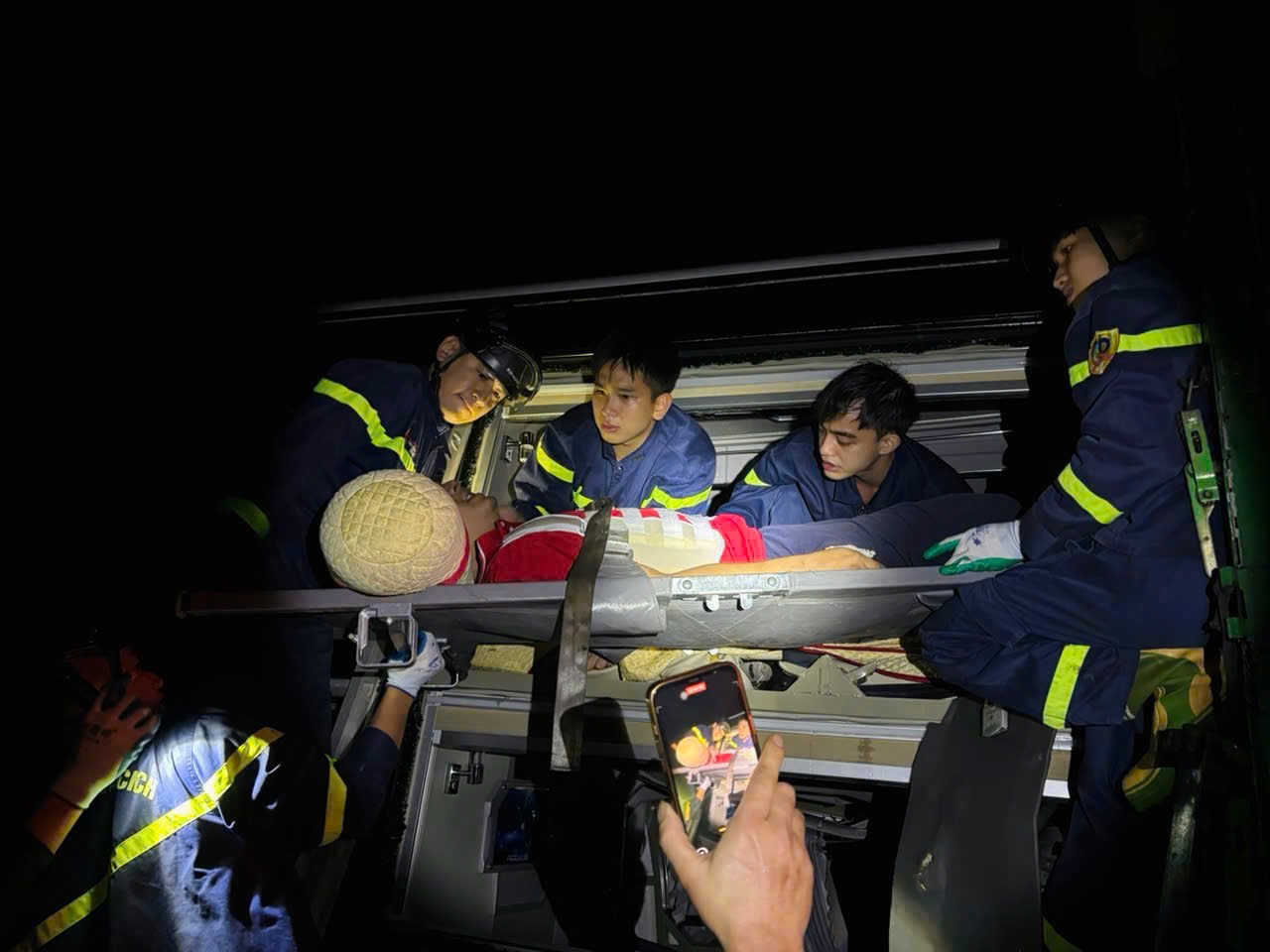 Vụ tai nạn giữa xe ô tô khách và xe tải khiến 2 người trên xe khách, gồm lái xe và một hành khách bị đa chấn thương, mắc kẹt trong cabin, không thể tự thoát ra ngoài. Thời điểm xảy ra tai nạn vào rạng sáng, hiện trường ùn tắc cục bộ, gây nhiều khó khăn cho lực lượng cứu nạn trong việc tiếp cận vị trí xảy ra tai nạn.