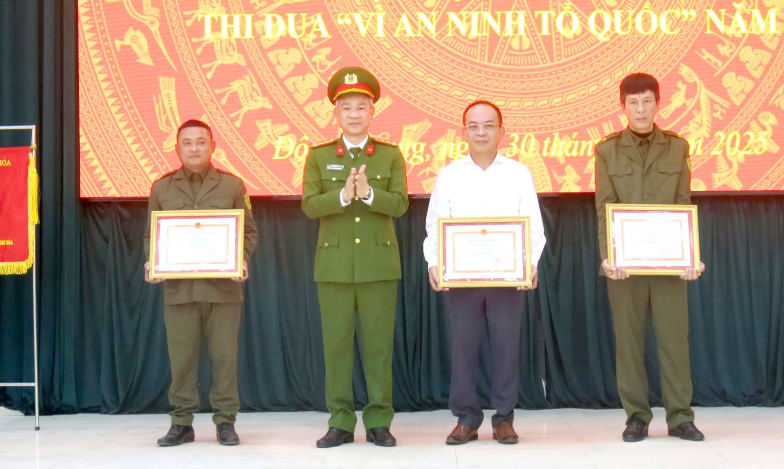 Đồng chí Phó Giám đốc Công an tỉnh trao thưởng cho các tập thể, cá nhân có thành tích xuất sắc