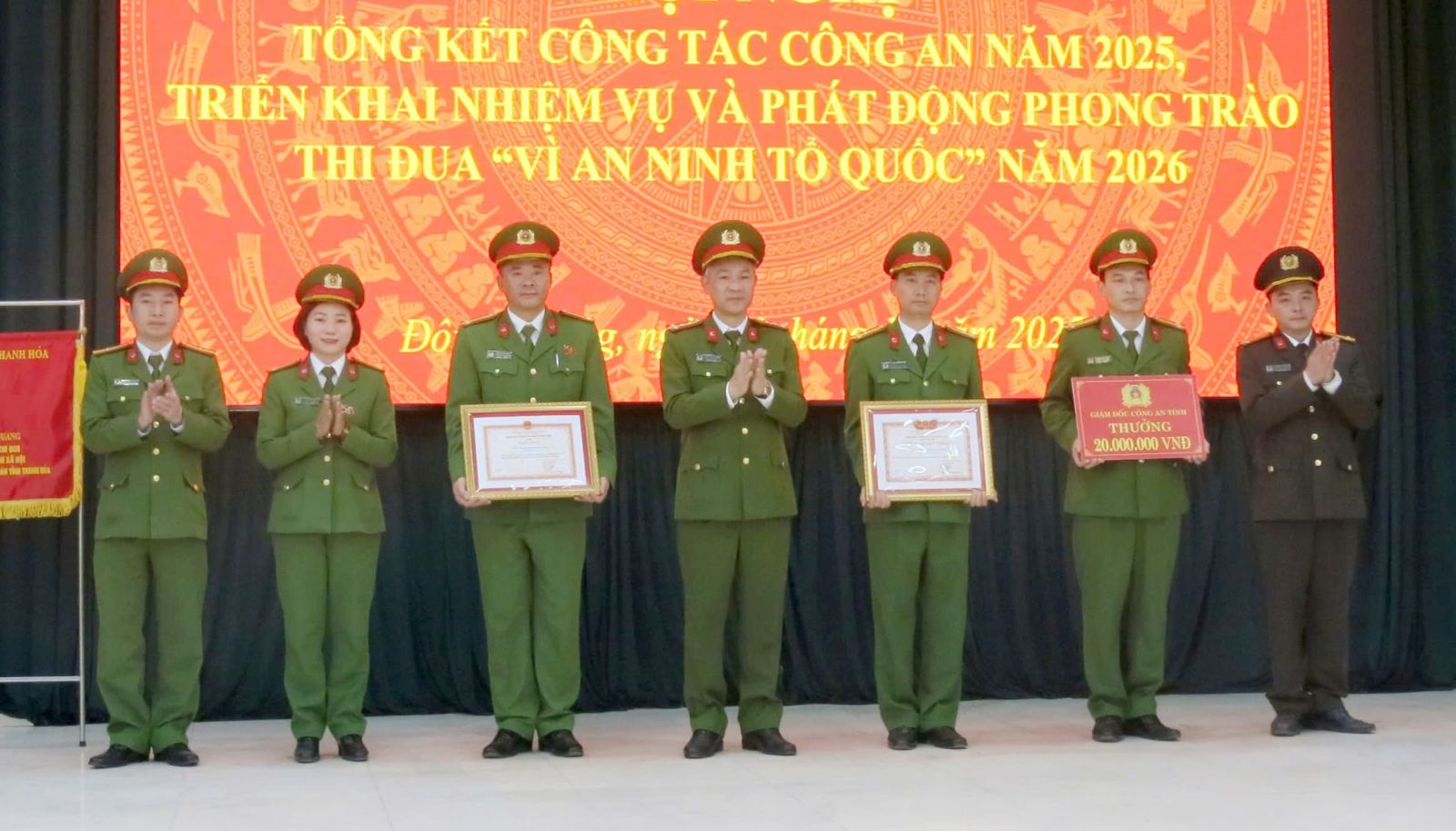 Đồng chí Phó Giám đốc Công an tỉnh đã trao thưởng nóng 20 triệu đồng từ nguồn kinh phí phòng, chống tội phạm của Công an tỉnh Thanh Hoá và trao danh hiệu “Đơn vị Quyết thắng” cho Công an phường Đông Quang