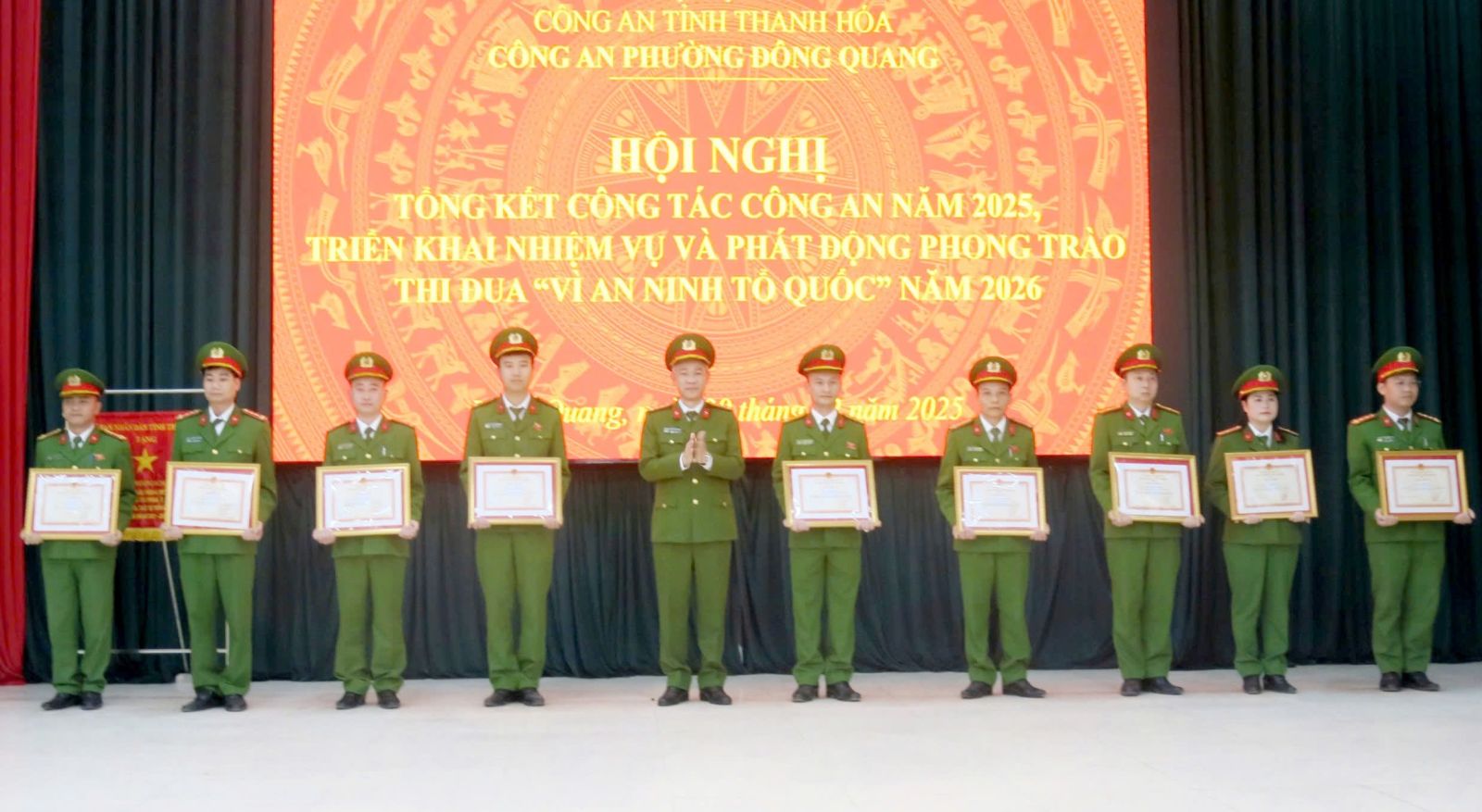 Dưới sự lãnh đạo sâu sát của Đảng ủy, lãnh đạo Công an tỉnh và sự chỉ đạo trực tiếp của cấp ủy, chính quyền địa phương, năm 2025 Công an phường Đông Quang đã hoàn thành tốt nhiệm vụ được giao; giữ vững ổn định an ninh chính trị, trật tự an toàn xã hội trên địa bàn. Đơn vị chủ động nắm chắc tình hình, quản lý chặt địa bàn và đối tượng; thực hiện hiệu quả công tác quản lý cư trú, quản lý ngành nghề kinh doanh có điều kiện; đẩy mạnh tuyên truyền, vận động Nhân dân tham gia phong trào toàn dân bảo vệ an ninh Tổ quốc. Nhờ đó, tình hình ANTT cơ bản ổn định, không phát sinh vụ việc phức tạp, kéo dài, được cấp ủy, chính quyền và Nhân dân ghi nhận, đánh giá cao.