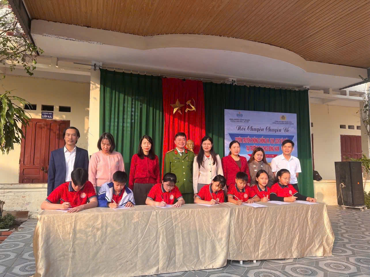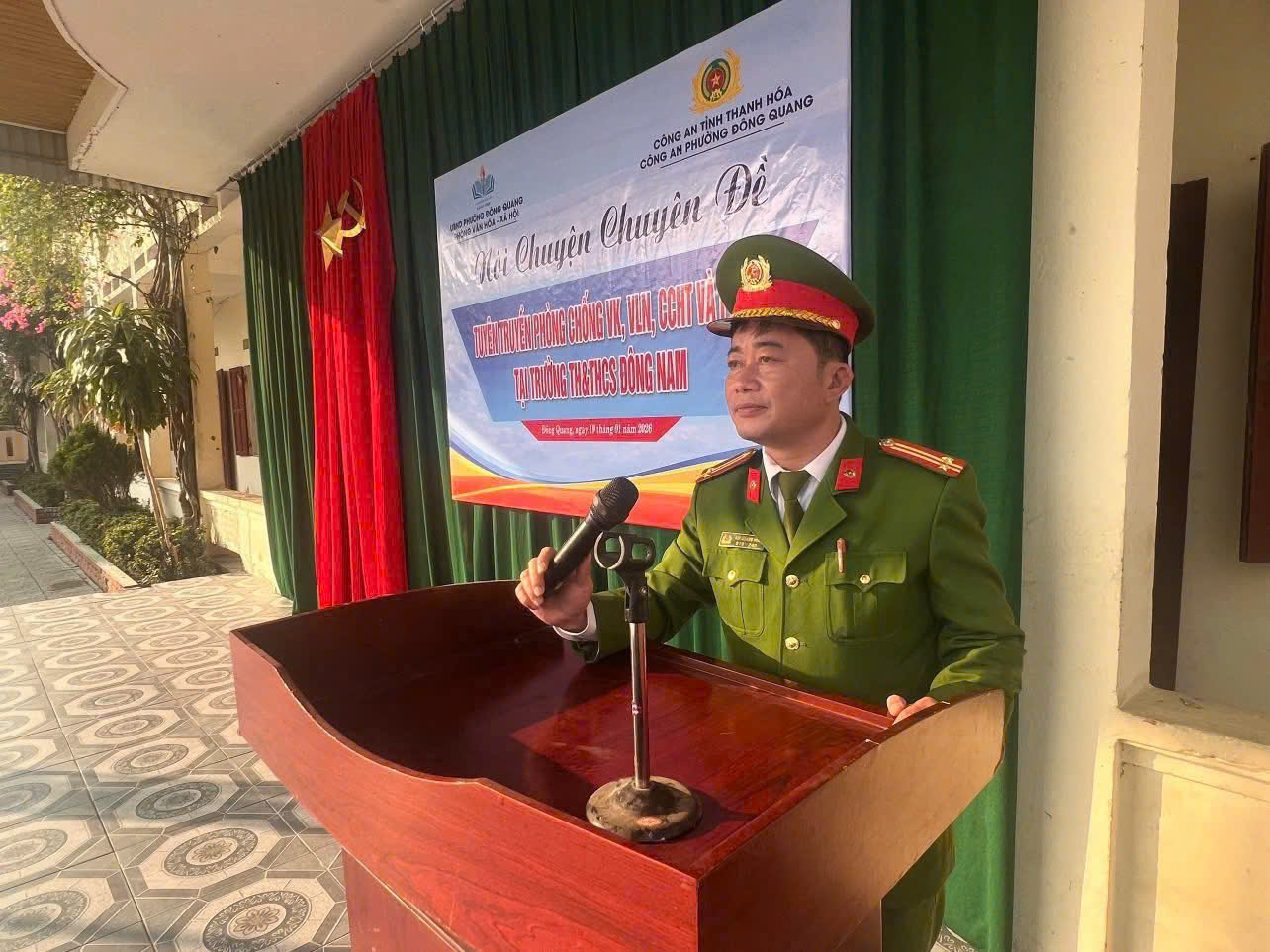 Sáng 19/01/2026, Công an phường Đông Quang phối hợp với Ban Giám hiệu các trường THCS Đông Vinh, Đông Yên, Đông Nam, Đông Phú, Đông Quang, trường liên cấp Nobel, THPT Đông Sơn 2 và Trung tâm GDTX-GDNN số 1 tổ chức buổi tuyên truyền pháp luật về vũ khí, vật liệu nổ, công cụ hỗ trợ (VK,VLN,CCHT), pháo và công tác phòng cháy, chữa cháy. Buổi tuyên truyền đã thu hút sự tham gia của trên 4.000 cán bộ, giáo viên và học sinh, thể hiện sự quan tâm sâu sắc của các cấp, các ngành đối với công tác giáo dục pháp luật, bảo đảm an ninh, an toàn trường học, nhất là trong thời điểm trước, trong và sau Tết Nguyên đán..