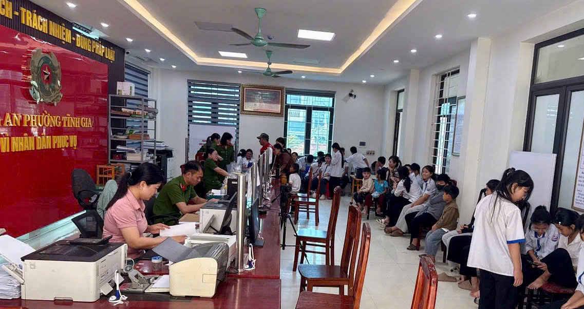 Trong ngày đầu nghỉ lễ Giỗ Tổ Hùng Vương, Công an phường Tĩnh Gia đã cấp 164 căn cước, thu nhận định danh điện tử cho 110 cháu học sinh độ tuổi từ 6 đến 14. Nhiều trường hợp công dân đi làm ăn xa tranh thủ về địa phương đã được giải quyết kịp thời, bảo đảm quyền lợi, nhu cầu chính đáng của Nhân dân.