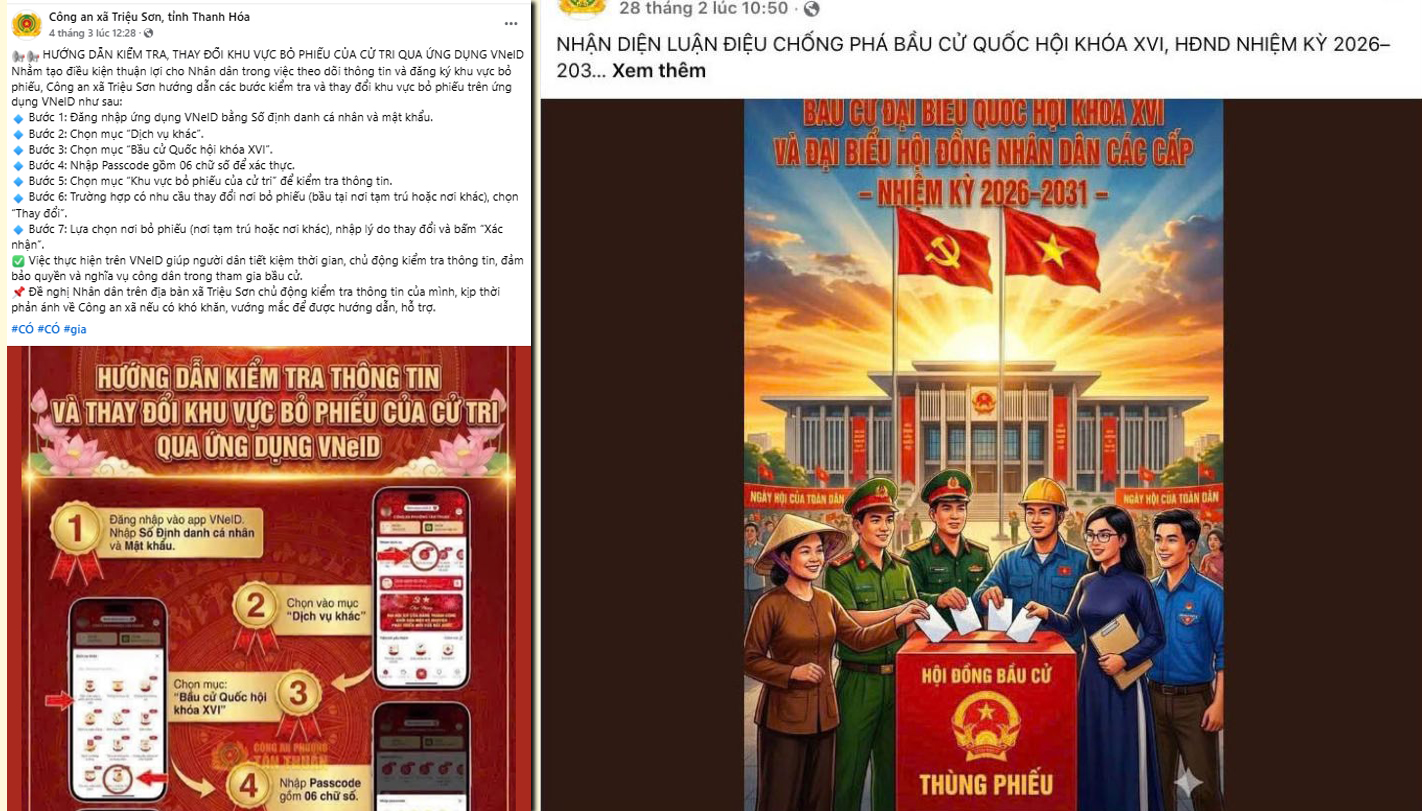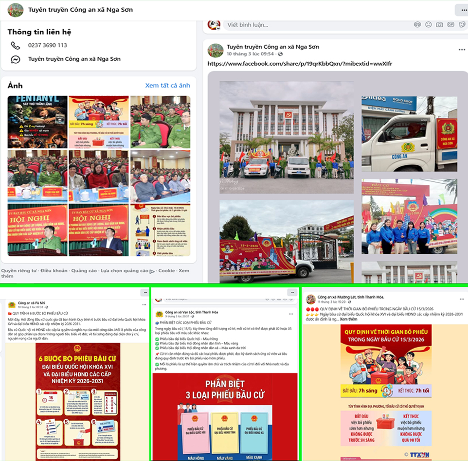 Không chỉ đăng tải thông tin về các ứng cử viên, fanpage của Công an các xã, phường trên địa bàn tỉnh Thanh Hóa cùng với các trang thông tin của cấp ủy, chính quyền và các đoàn thể còn thường xuyên cập nhật các hoạt động chuẩn bị cho ngày bầu cử. Trong đó, nhiều nội dung tập trung hướng dẫn cụ thể cho cử tri về các bước tiến hành bầu cử, giải thích rõ ý nghĩa, tầm quan trọng của “ngày hội non sông”, qua đó nâng cao nhận thức và trách nhiệm của người dân trong việc thực hiện quyền và nghĩa vụ công dân.