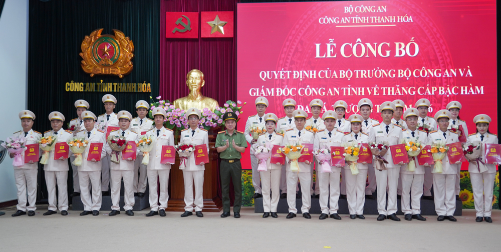 Đây không chỉ là niềm vinh dự, tự hào của mỗi cá nhân và gia đình các đồng chí được thăng cấp bậc hàm Đại tá, Thượng tá dịp này, mà còn là niềm vui chung của lực lượng Công an Thanh Hóa và là sự ghi nhận xứng đáng đối với những cống hiến của các đồng chí trong sự nghiệp bảo vệ an ninh quốc gia, giữ gìn trật tự an toàn xã hội và xây dựng lực lượng Công an vững mạnh toàn diện.