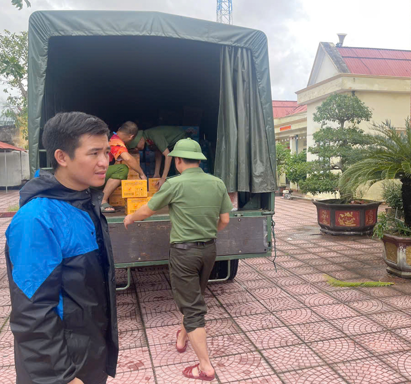 Để kịp thời hỗ trợ bà con khắc phục hậu quả mưa bão, ổn định cuộc sống, sáng 30/9, Công an tỉnh Thanh Hóa đã vận chuyển một xe hàng lương thực, thực phẩm gồm: 70 thùng nước uống, 40 thùng mì tôm, 30 thùng bánh mì, 60 thùng lương khô … trực tiếp đưa vào 2 xã Nông Cống và Tượng Lĩnh để cứu trợ người dân trong vùng lũ lụt.