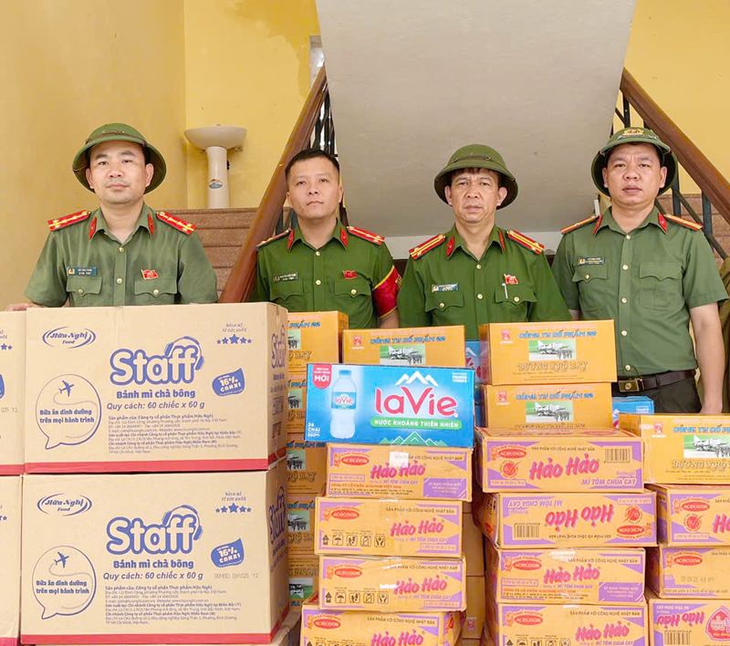 Do nhiều điểm ngập lụt sâu, phương tiện ô tô không thể vận chuyển vào tận khu dân cư được nên lực lượng Công an đã chia thành nhiều tổ công tác vừa tổ chức công tác cứu nạn, cứu hộ, vừa di chuyển bằng thuyền, ca nô nhanh chóng đưa hàng cứu trợ đến với người dân một cách kịp thời.