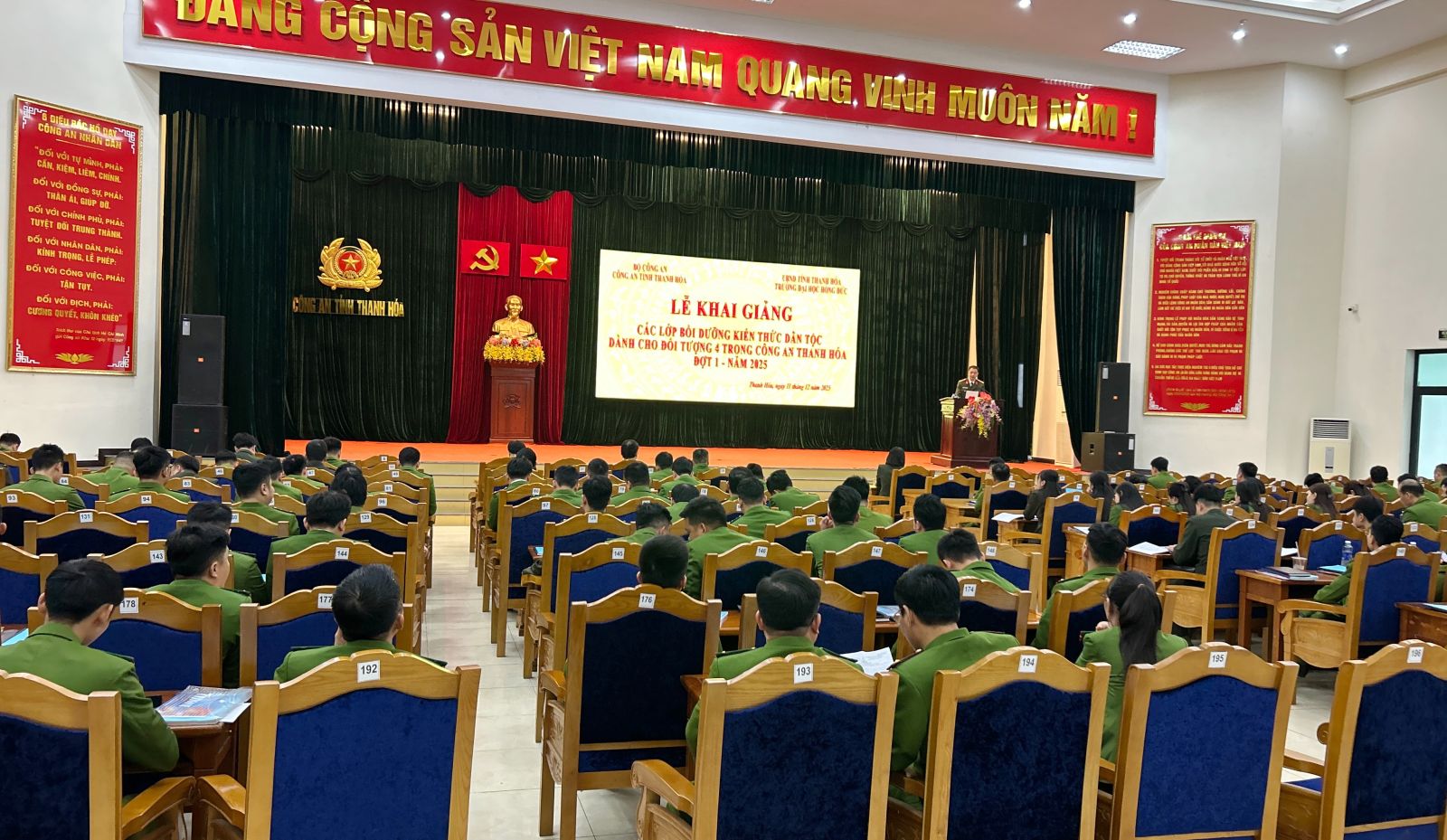 Thực hiện Kế hoạch của Bộ Công an và UBND tỉnh về thực hiện Đề án “Bồi dưỡng kiến thức dân tộc đối với cán bộ, công chức viên chức giai đoạn 2018 - 2025”, sáng 11/12/2025, Công an tỉnh Thanh Hoá tổ chức lớp bồi dưỡng kiến thức dân tộc đợt 1 cho gần 200 cán bộ, chiến sĩ trực tiếp tham mưu, theo dõi công tác dân tộc và cán bộ, chiến sĩ trực tiếp công tác, đóng quân trên địa bàn các xã thuộc vùng đồng bào dân tộc thiểu số, miền núi tỉnh Thanh Hoá…