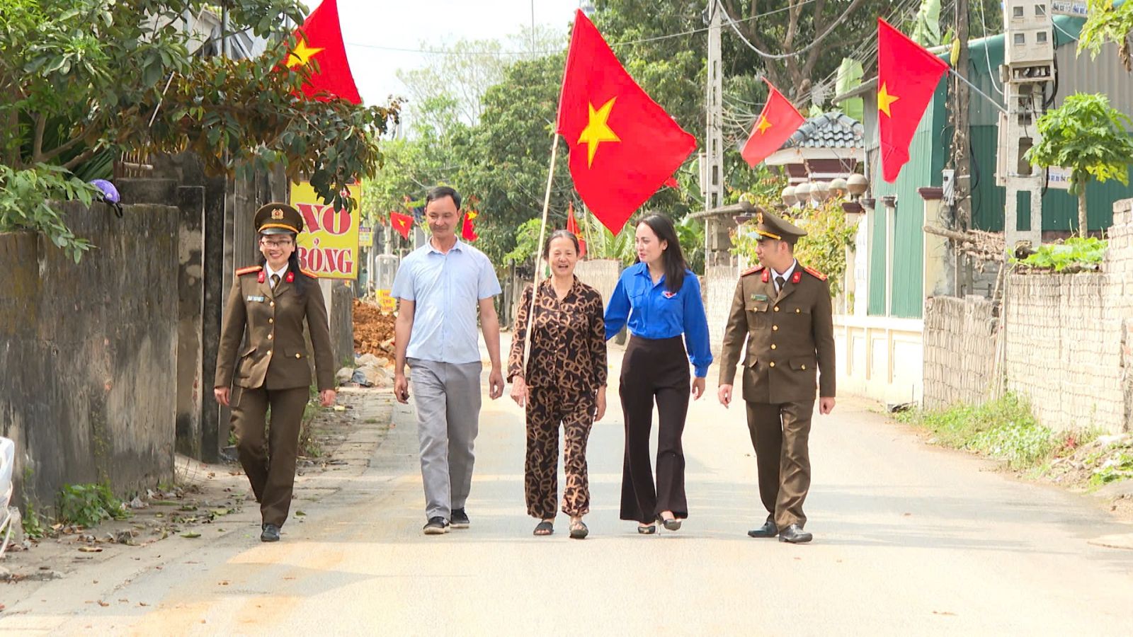 Sự sáng tạo của Công an xã Nga Thắng không chỉ dừng lại trên không gian mạng mà còn thể hiện rõ nét giữa đời thực. Mô hình dân vận khéo “Đường cờ Tổ quốc” tại giáo xứ Tam Linh là một minh chứng điển hình cho tinh thần đại đoàn kết dân tộc. Từ việc gần gũi, gắn bó với Nhân dân, Công an xã Nga Thắng đã tham mưu cấp uỷ, chính quyền và phối hợp với giáo xứ Tam Linh (thôn Tam Linh) triển khai xây dựng mô hình “Đường cờ Tổ quốc” với 40 vị trí treo cờ Đảng, cờ Tổ quốc được bố trí trang trọng xung quanh khu vực nhà thờ.