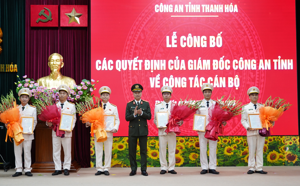 Tại buổi lễ, đồng chí Thiếu tướng Tô Anh Dũng, Giám đốc Công an tỉnh đã trao các Quyết định điều động Thượng tá Lê Bá Thành, Phó Trưởng phòng Phòng An ninh kinh tế đến nhận công tác và giữ chức vụ Phó Trưởng phòng Phòng An ninh mạng và Phòng, chống tội phạm sử dụng công nghệ cao; điều động Thượng tá Đinh Trọng Hiền, Phó Trưởng phòng Phòng Cảnh sát điều tra tội phạm về kinh tế đến nhận công tác và giữ chức vụ Phó Giám thị Trại tạm giam Công an tỉnh. Trao Quyết định bổ nhiệm các đồng chí: Trung tá Lương Ngọc Hải và Trung tá Nguyễn Văn Hùng giữ chức vụ Phó Trưởng phòng Phòng Cảnh sát điều tra tội phạm về kinh tế; Trung tá Lê Văn Hưng giữ chức vụ Phó Trưởng phòng Phòng An ninh kinh tế; Trung tá Nguyễn Khắc Lực giữ chức vụ Phó Trưởng phòng Phòng Cảnh sát điều tra tội phạm về ma túy.