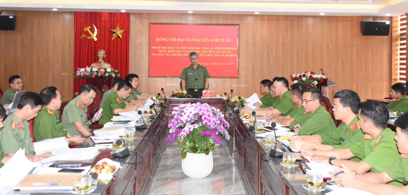 Ngày 22/10/2025, Đoàn công tác của Công an tỉnh do đồng chí Đại tá Nguyễn Anh Tuấn, Phó Giám đốc làm Trưởng đoàn đã có buổi kiểm tra, làm việc với Công an 6 xã: Nga Sơn, Nga Thắng, Hồ Vương, Tân Tiến, Nga An và Ba Đình về công tác bảo đảm an ninh, trật tự, xây dựng lực lượng và triển khai các nhiệm vụ trọng tâm trong thời gian tới. Tham gia Đoàn công tác có đại diện lãnh đạo một số phòng chức năng Công an tỉnh.