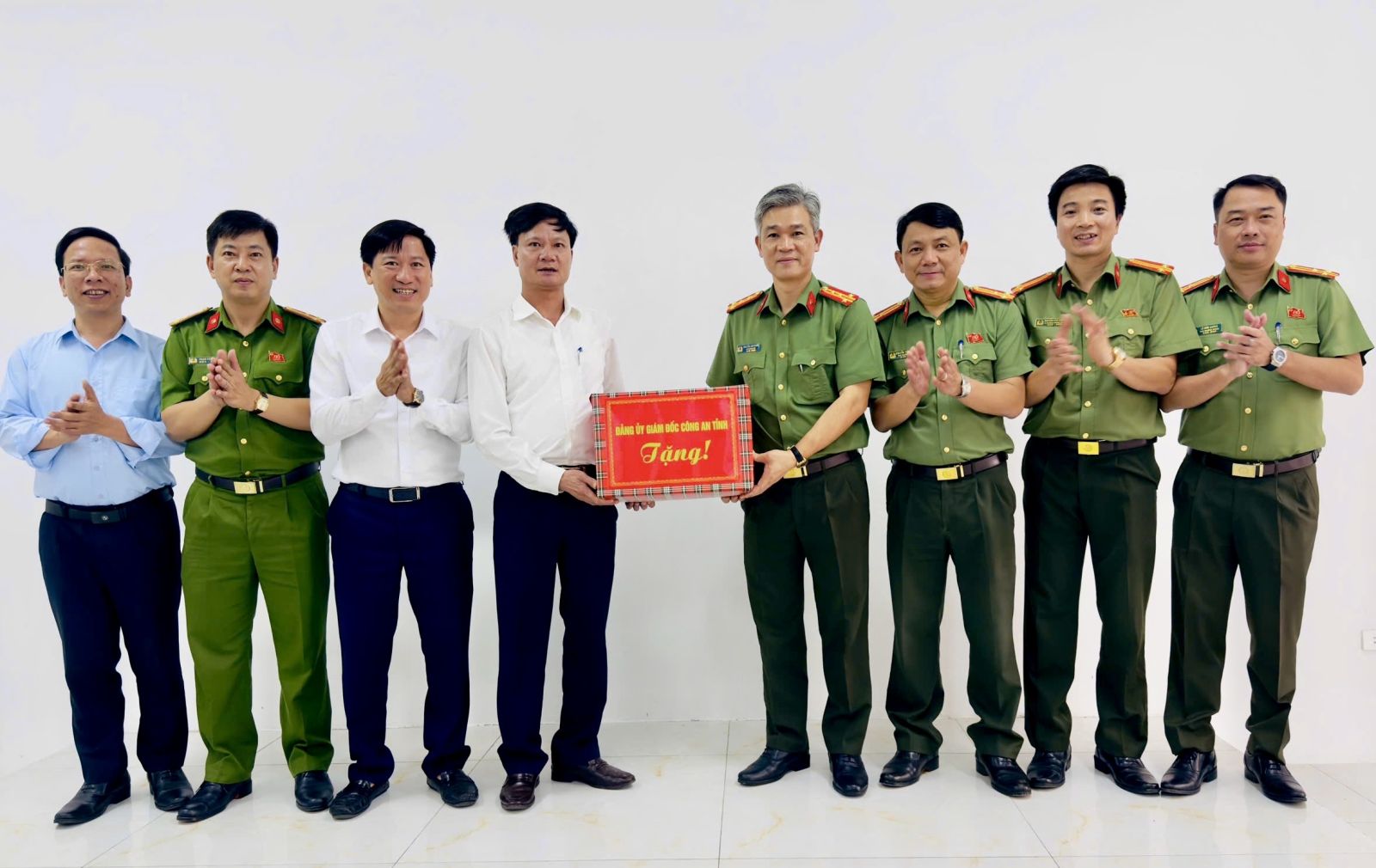 Đồng chí Phó Giám đốc Công an tỉnh tặng quà cho cấp ủy, chính quyền xã Nga Sơn