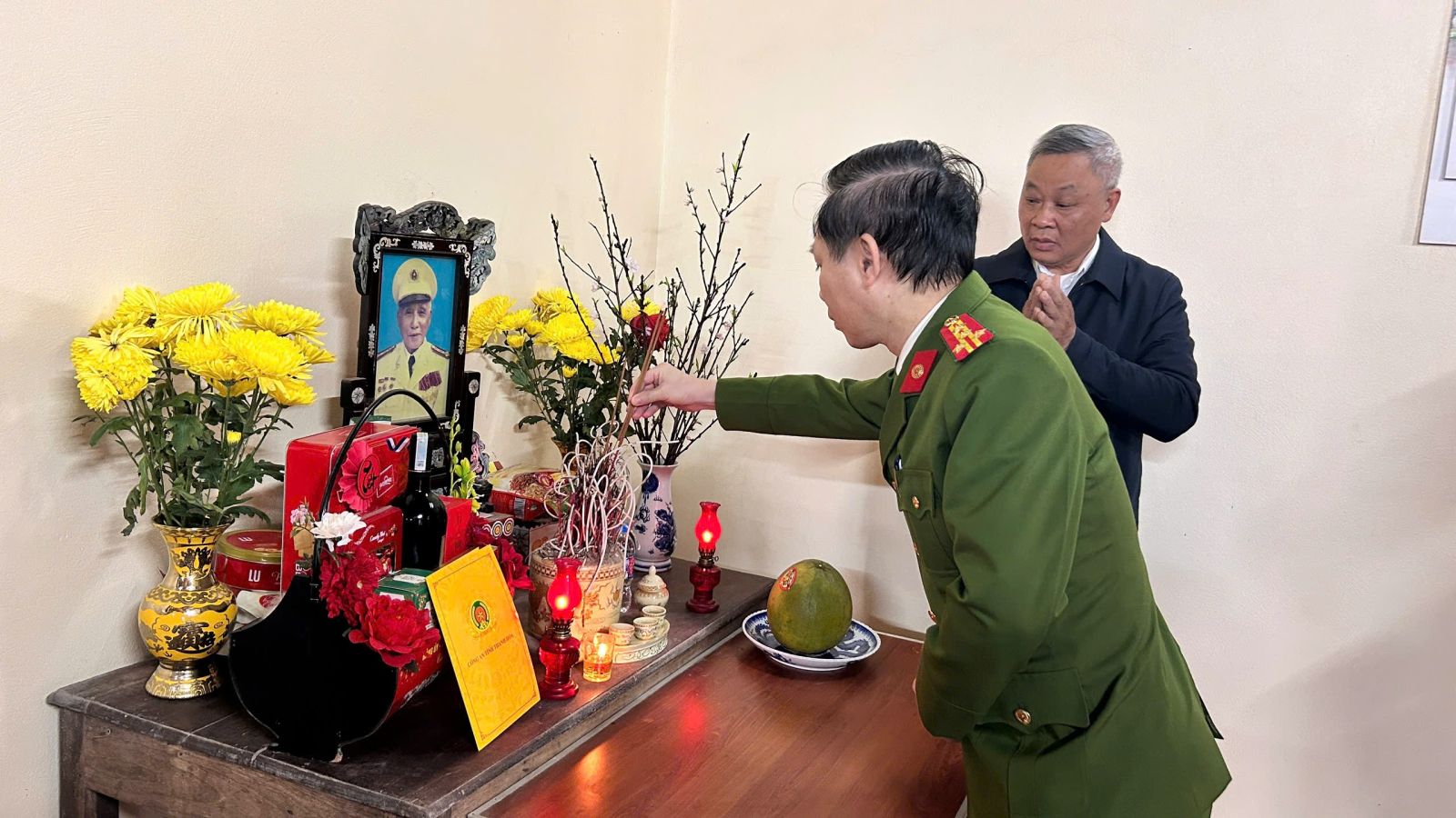 Đến thắp hương tưởng nhớ các đồng chí nguyên Phó Giám đốc Công an tỉnh: Nguyễn Xuân Lô và Lê Đình Thinh, Đại tá Trịnh Văn Giang cùng đoàn công tác đã thành kính thắp hương, bày tỏ lòng biết ơn vô hạn đối với những cống hiến to lớn của các đồng chí nguyên Phó Giám đốc Công an tỉnh. Những nén hương được dâng lên không chỉ tưởng nhớ, mà còn là lời hứa của thế hệ hôm nay trước các đồng chí nguyên lãnh đạo Công an tỉnh.