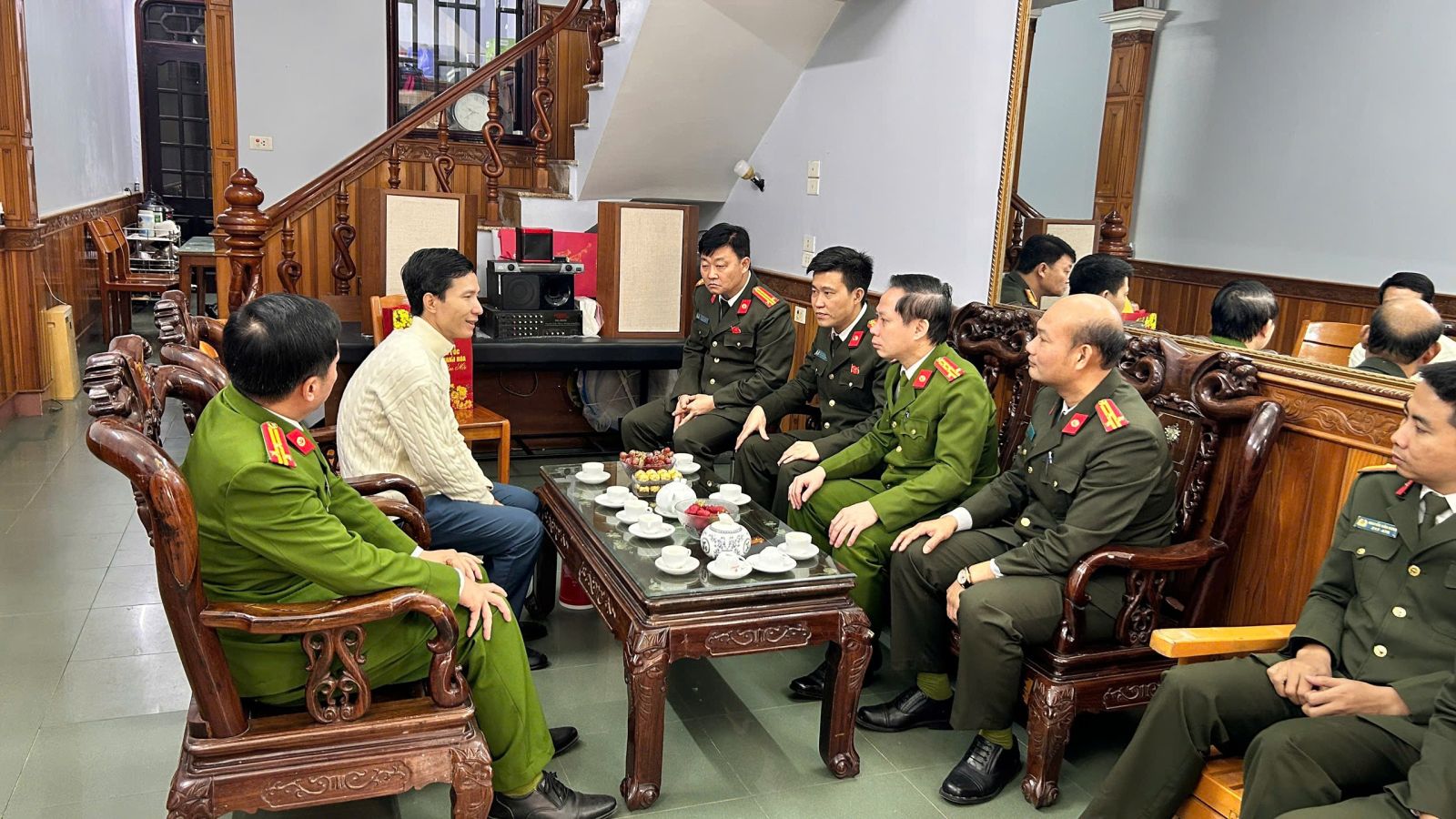 Đồng chí Đại tá Trịnh Văn Giang, Phó Giám đốc Công an tỉnh gặp gỡ, thăm hỏi thân nhân