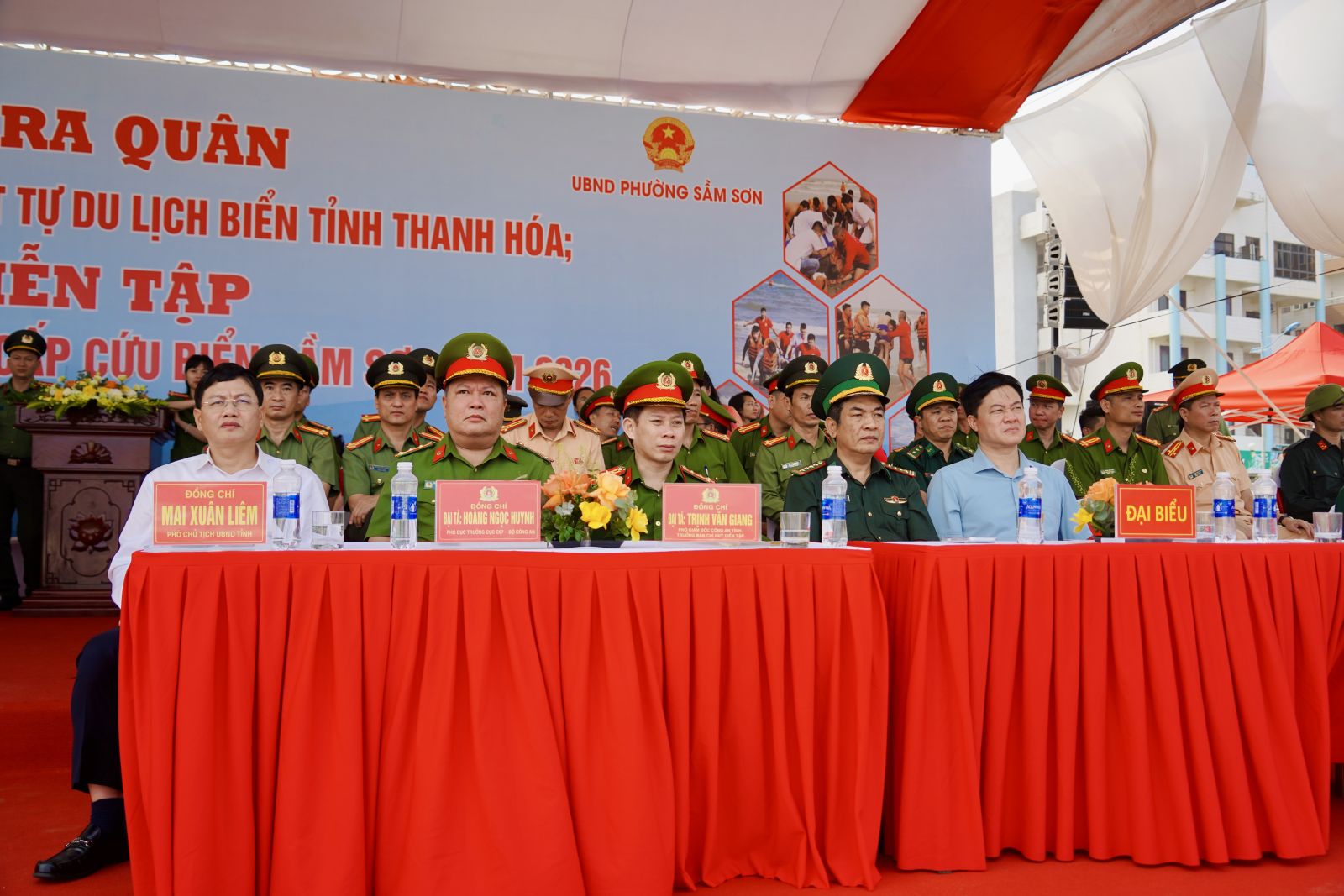 Chiều 21/4/2026, tại bãi biển Sầm Sơn, Công an tỉnh Thanh Hóa tổ chức lễ ra quân bảo đảm an ninh trật tự du lịch biển và diễn tập phương án cứu nạn, cứu hộ (CNCH), sơ cấp cứu biển năm 2026. Dự và chỉ đạo buổi diễn tập có đồng chí Mai Xuân Liêm, Ủy viên Ban Thường vụ Tỉnh ủy, Phó Chủ tịch Thường trực UBND tỉnh; Thiếu tướng Tô Anh Dũng, Ủy viên Ban Thường vụ Tỉnh ủy, Giám đốc Công an tỉnh; Đại tá Hoàng Ngọc Huynh, Phó Cục trưởng Cục Cảnh sát PCCC và CNCH (Bộ Công an), các đồng chí Phó Giám đốc Công an tỉnh: Đại tá Lê Ngọc Anh, Đại tá Trịnh Văn Giang, Thượng tá Kim Duy Cương, cùng đại diện các sở, ngành cấp tỉnh, đại diện lãnh đạo các phòng nghiệp vụ Công an tỉnh và hơn 800 cán bộ, chiến sĩ cùng các lực lượng tham gia diễn tập...