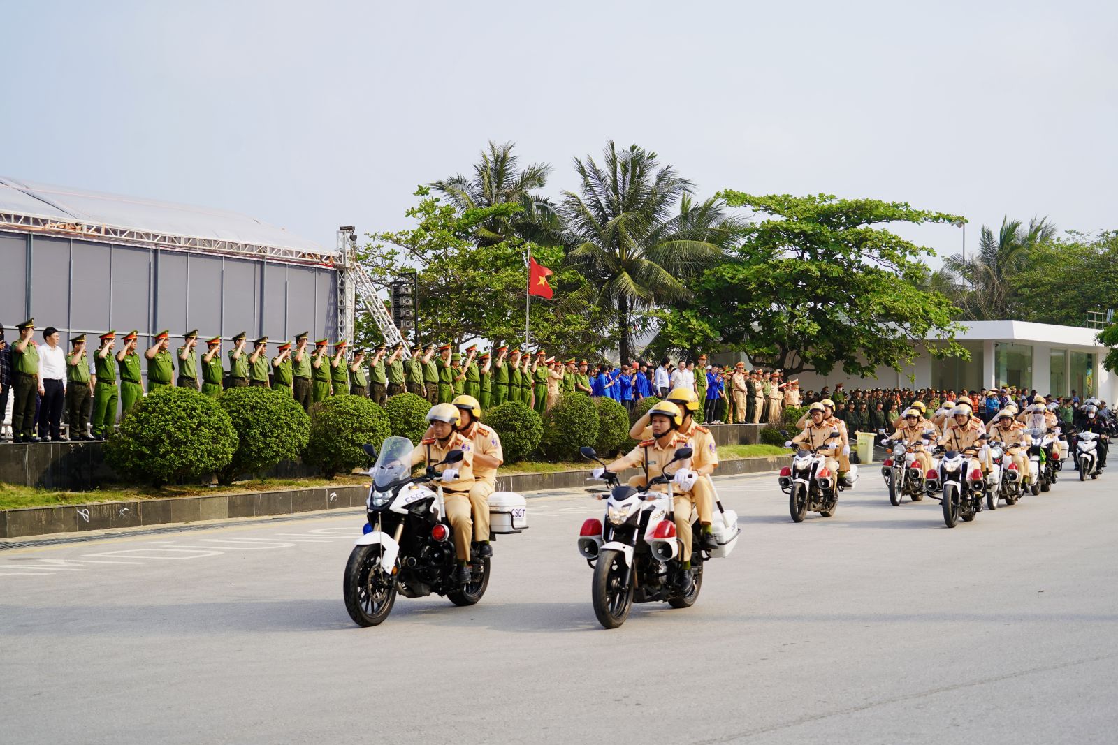Gần 800 cán bộ, chiến sĩ tham dự lễ ra quân bảo đảm an ninh trật tự du lịch biển và diễn tập phương án cứu nạn, cứu hộ (CNCH), sơ cấp cứu biển