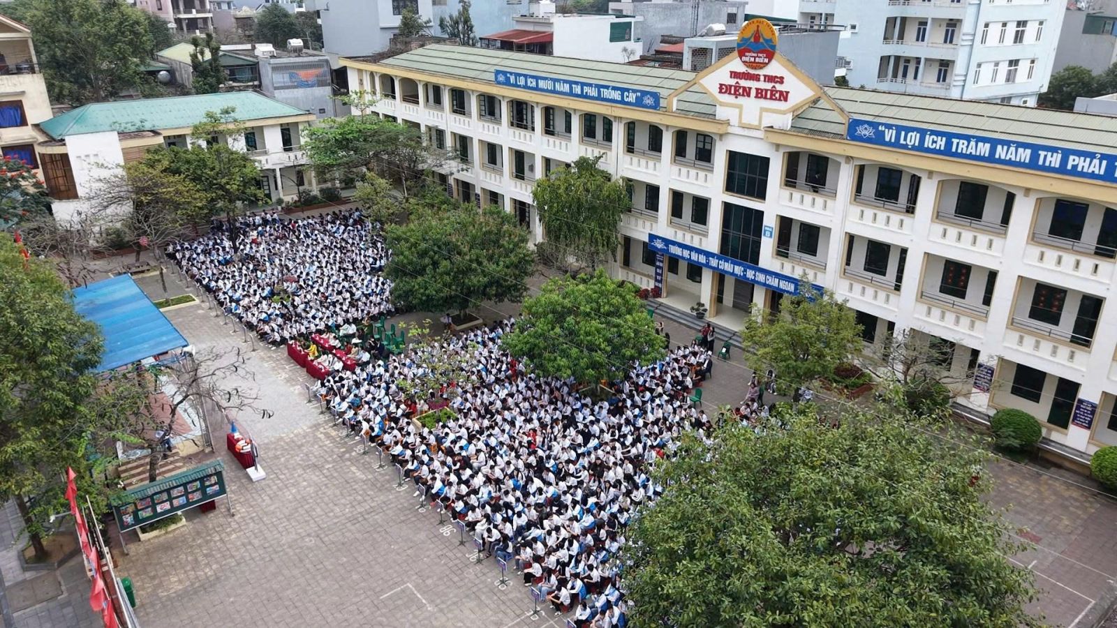 Đông đảo cán bộ, giáo viên và học sinh trường THCS Điên Biên tham gia chương trình ngoại khoá tuyên truyền kiến thức, kỹ năng an toàn PCCC và CNCH