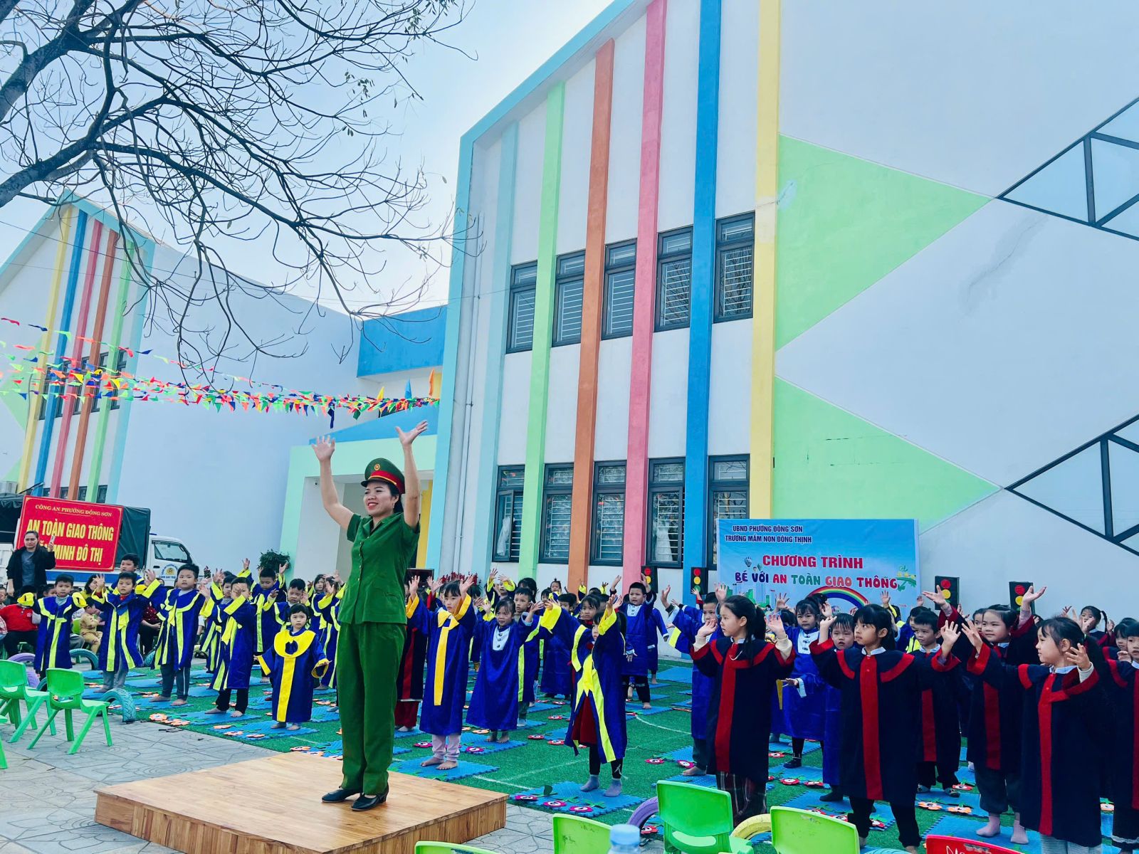 Công an phường Đông Sơn phối hợp Trường Mầm non Đông Thịnh tổ chức Chương trình "Bé với an toàn giao thông"