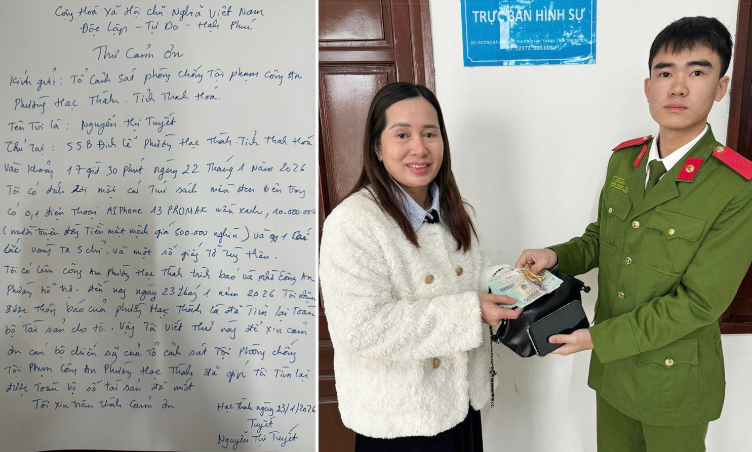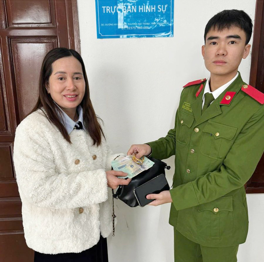 Với tinh thần trách nhiệm và phản ứng nhanh chóng, Công an phường Hạc Thành đã kịp thời xác minh, thu hồi và trao trả túi xách chứa nhiều tiền mặt, vàng cùng điện thoại cho công dân đánh rơi.
