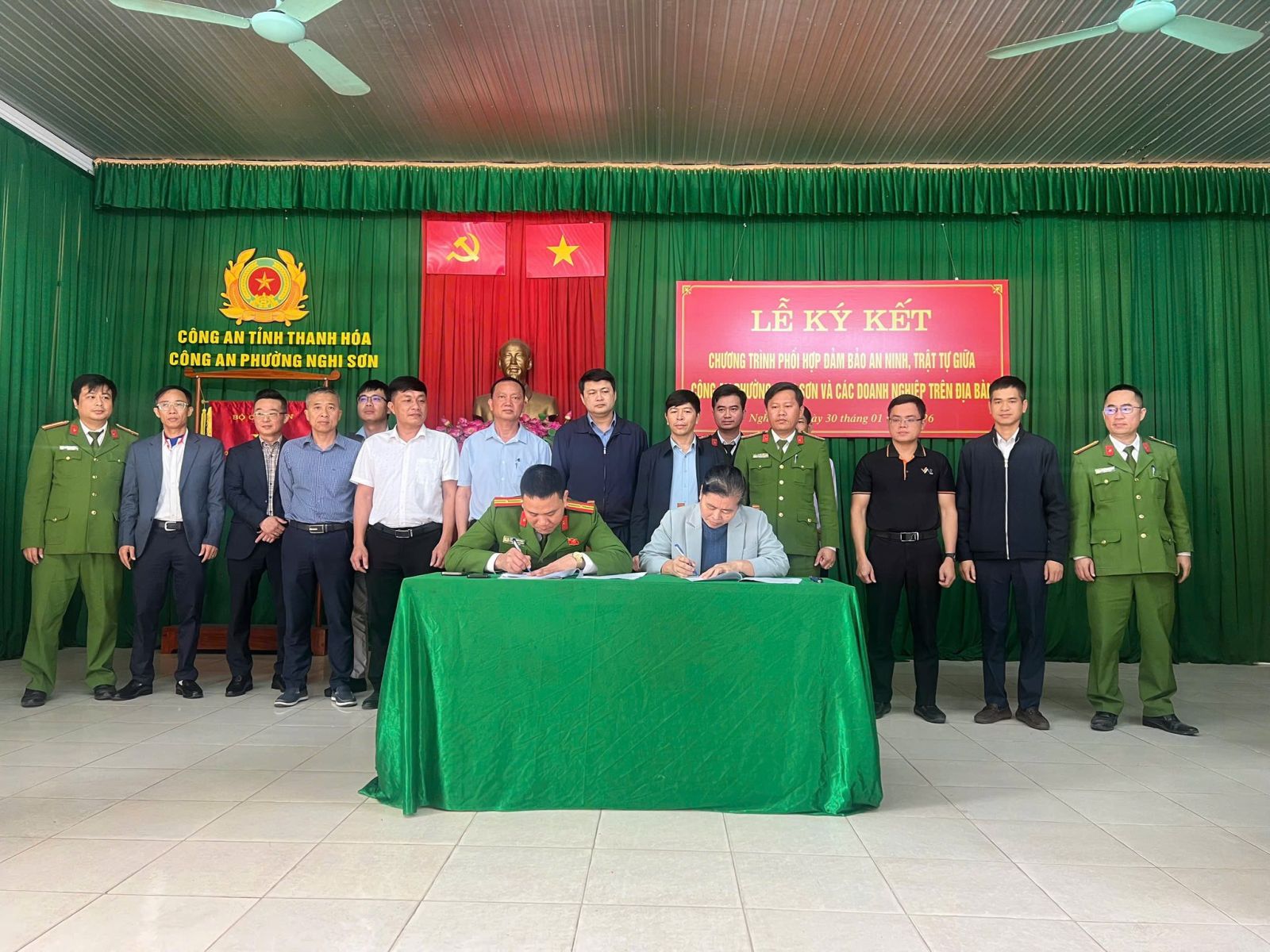 Công an phường Nghi Sơn ký kết chương trình phối hợp bảo đảm an ninh, trật tự với các doanh nghiệp trên địa bàn
