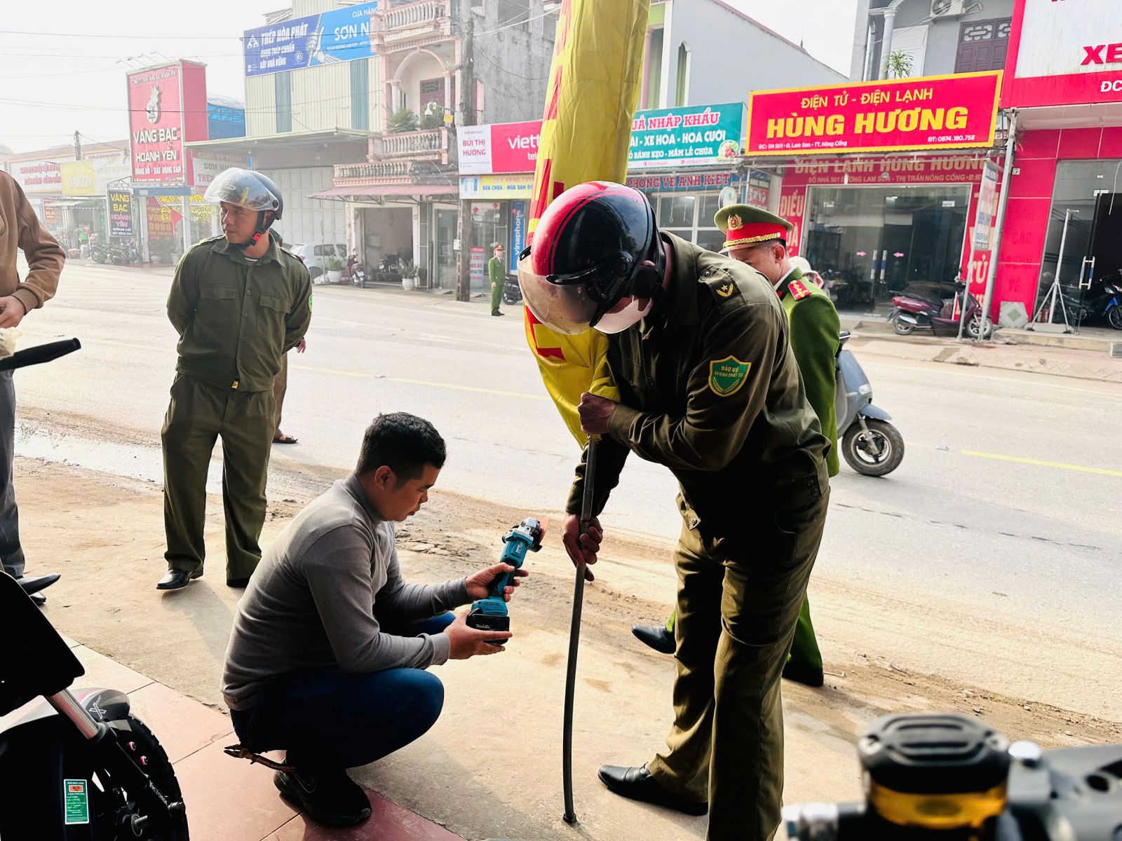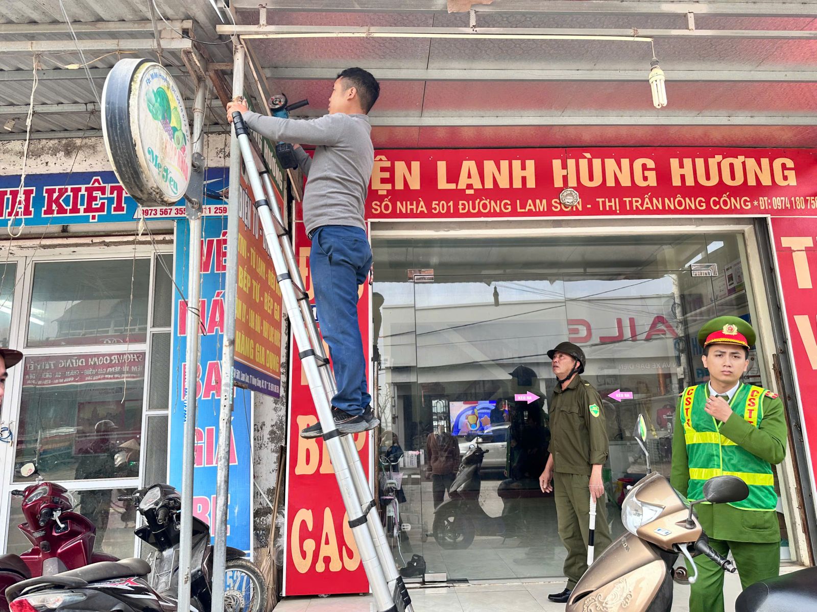 Công an xã Nông Cống ra quân giải phóng hành lang an toàn giao thông dịp trước Tết Nguyên đán