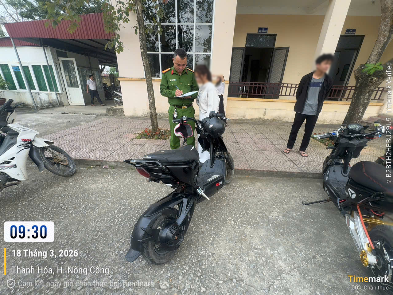 Công an xã Nông Cống tăng cường kiểm tra, xử lý tình trạng học sinh sử dụng phương tiện độ, chế trái quy định